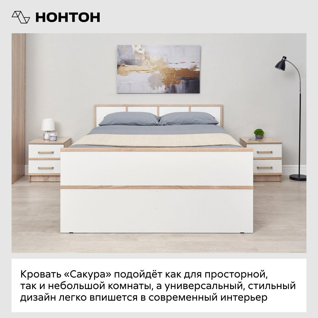 Кровать двуспальная с ящиком Нонтон Сакура, настил, 160х200 см, дуб сонома / белый