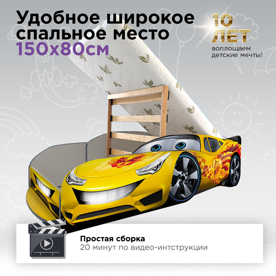 СохранитьКровать машина «Формула Лайт 4.0» детская кровать для мальчика Желтая - 155/85/49см интересное:
