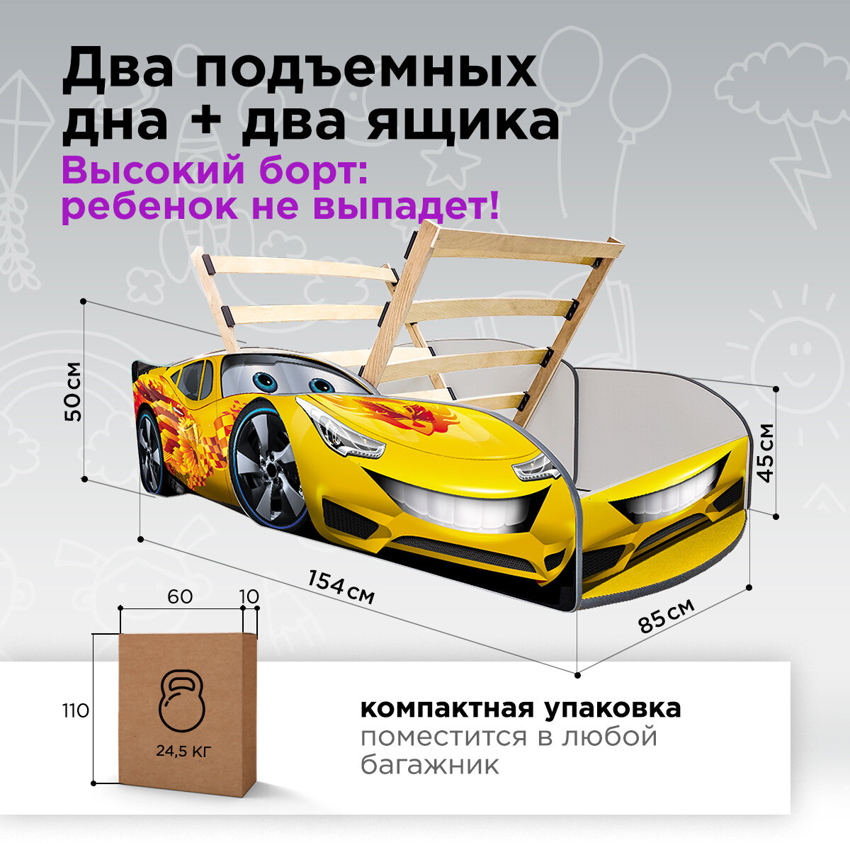 Кровать машина детская кровать для мальчика «Формула Лайт 4.0» Желтая - 155/85/49см