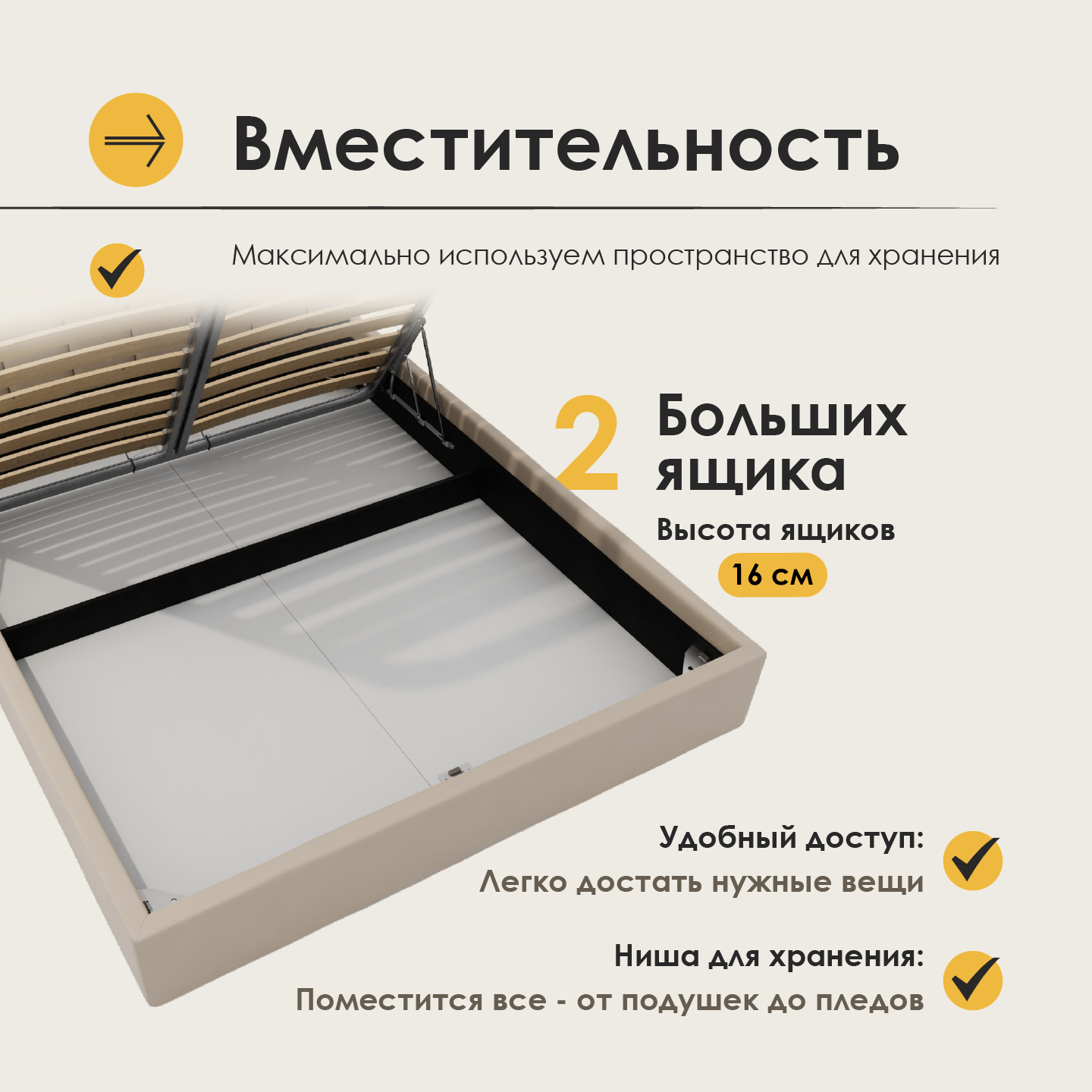 Кровать 160х200 двуспальная Алекса, с подъёмным механизмом, с ящиками, с мягким изголовьем, бежевая