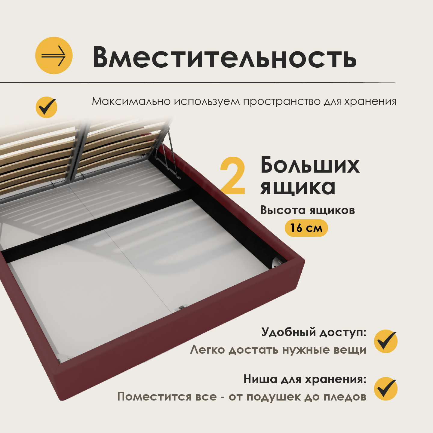 Кровать 160х200 двуспальная Алекса, с подъёмным механизмом, с ящиками, с мягким изголовьем, бордовая