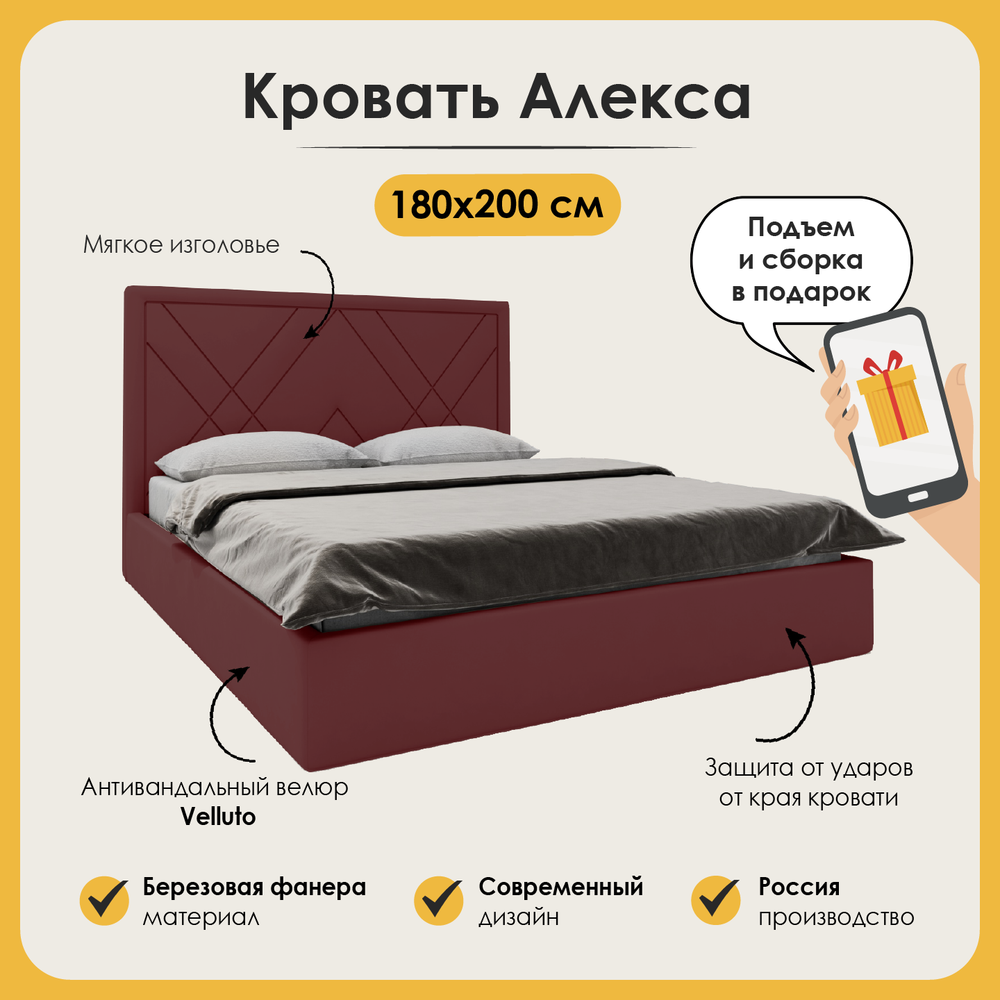 СохранитьКровать 180х200 двуспальная Алекса, с подъёмным механизмом, с ящиками, с мягким изголовьем, бордовая интересное: