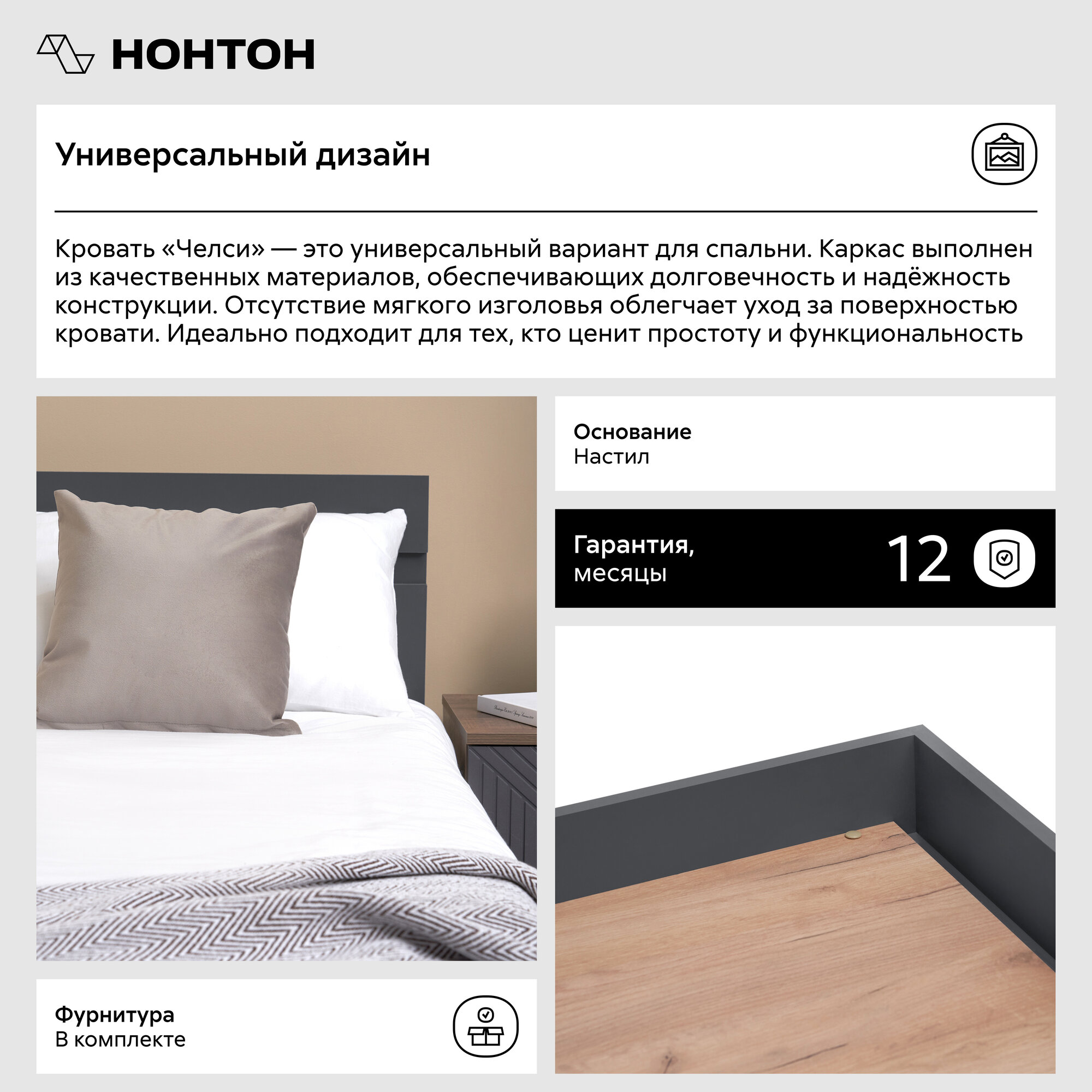 СохранитьКровать двуспальная Нонтон Челси, 160*200 см, графит интересное: