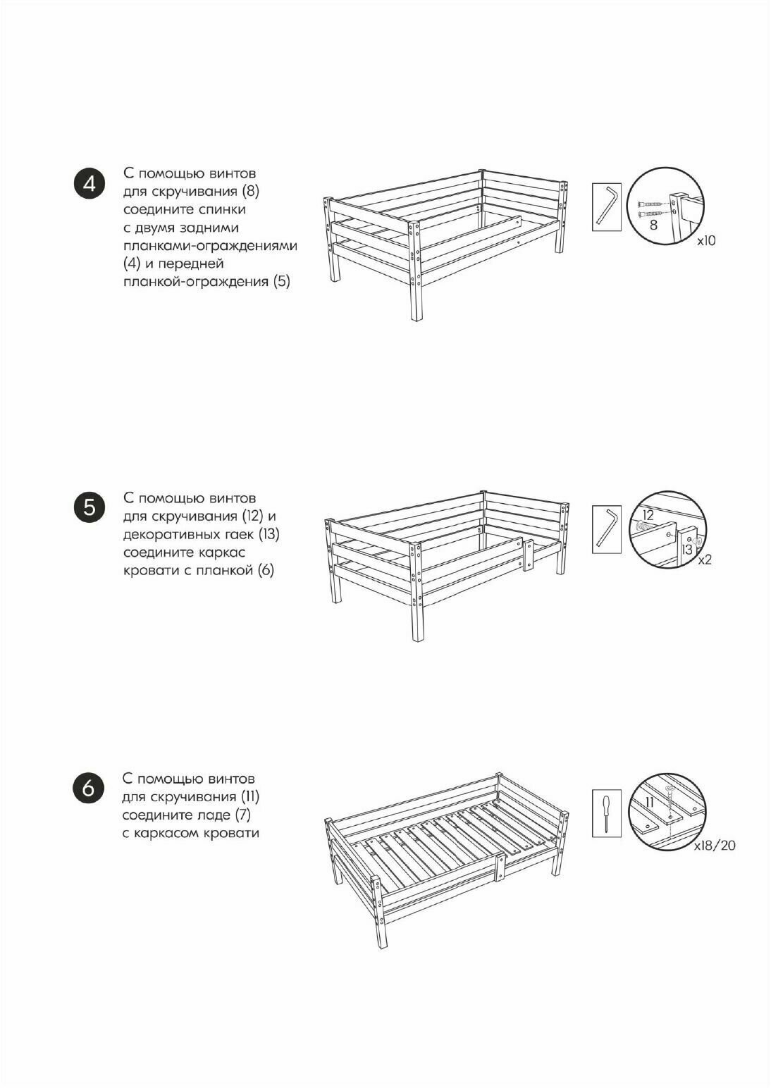 Кровать детская 200х90 см, без ящиков, цвет Белый, Деревянная из березы, Односпальная, Подростковая, Аналог Икея