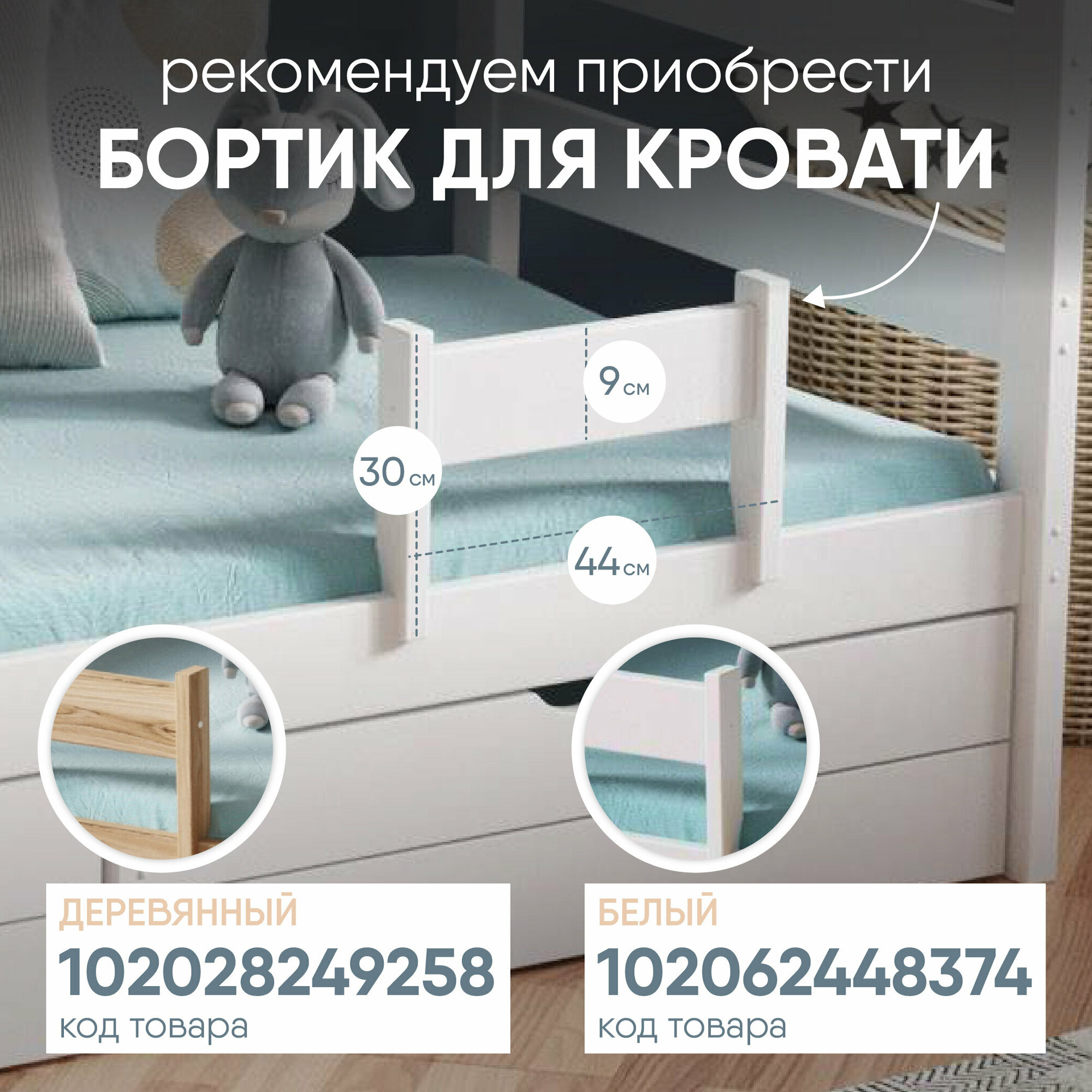 Детская кровать 160х80 с 2 выкатными ящиками и матрасом, цвет Белый, Деревянная из березы, Односпальная, Подростковая, Аналог Икея
