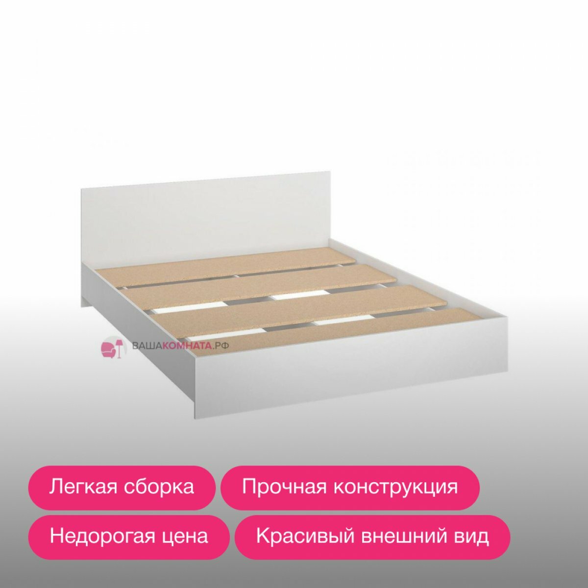 Кровать "Венеция" 1,6*2,0 м с основанием ЛДСП (КР-160) - Белый / Глянец жемчуг