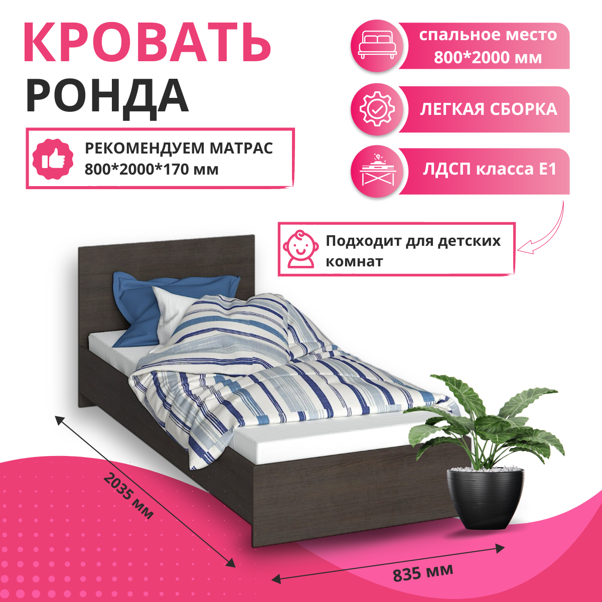 Кровать односпальная Нонтон Ронда, 80*200, основание ЛДСП, венге