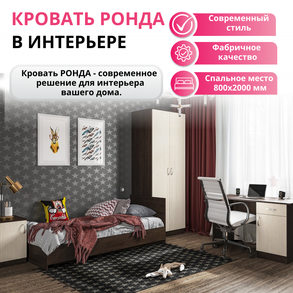СохранитьОдноспальная кровать "ронда" (КР-080), 80x200 см , цвет венге, для спальни интересное: