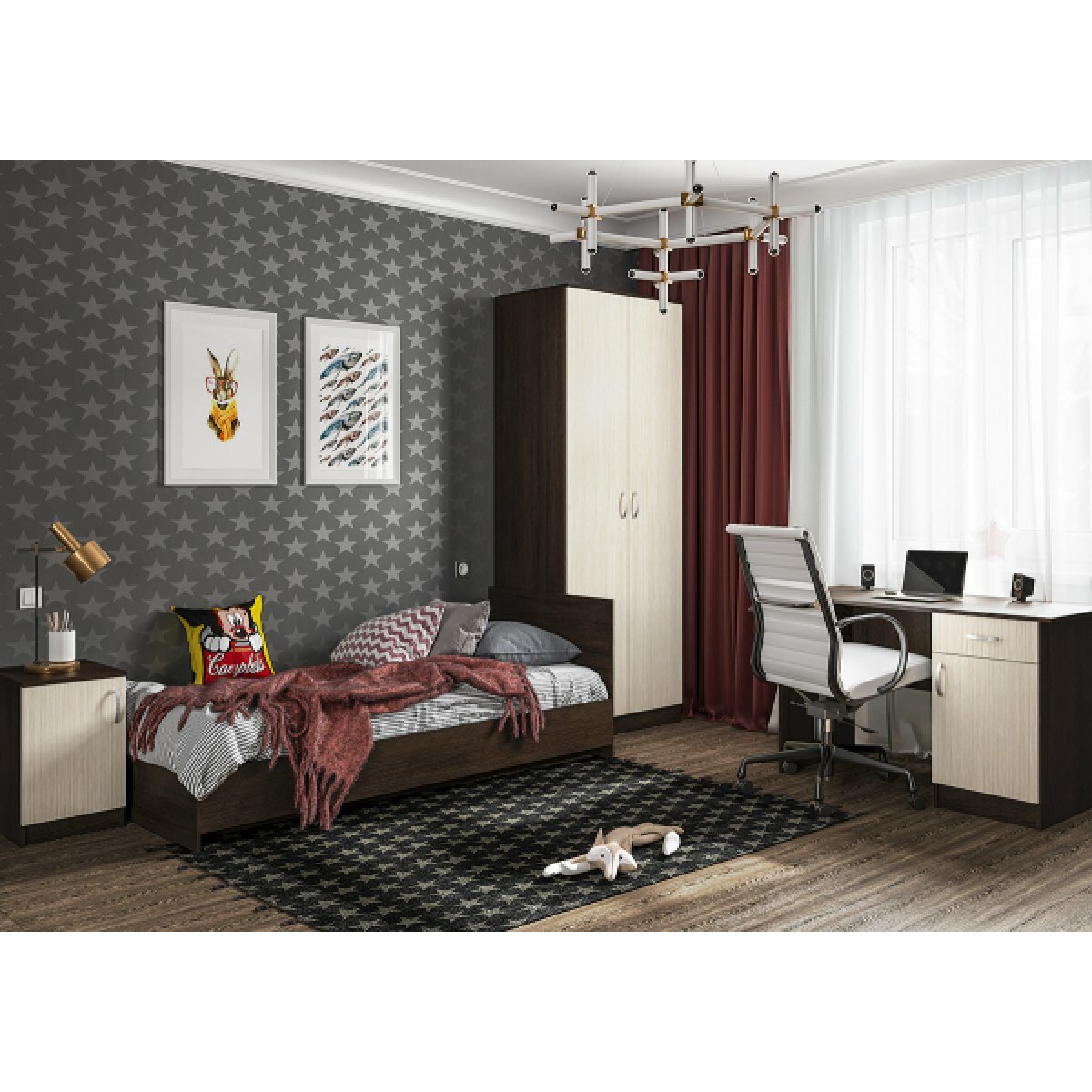 1 шт мс для спальни Ронда КР-080 (без основания) венге/венге + 1 шт мс для спальни Ронда основание КР-080 ЛДСП белый (Интерьер-Центр)