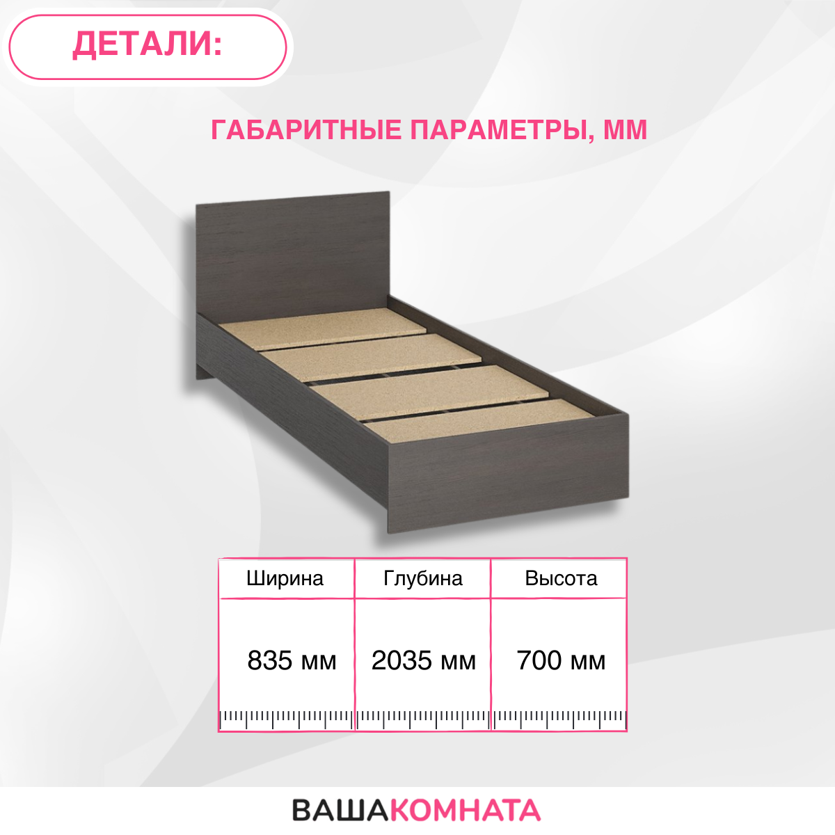 Кровать односпальная Нонтон Ронда, 80*200, основание ЛДСП, венге