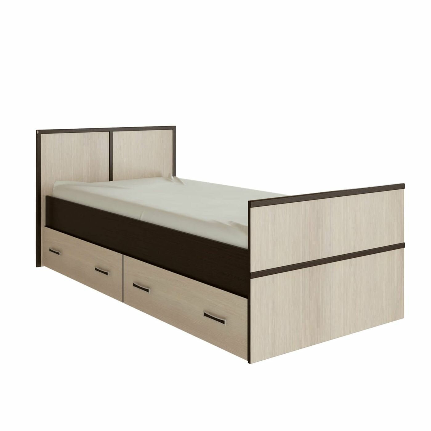 Кровать односпальная Сакура 90х200 см, с ящиками, основание настил, с изножьем, со спинкой, Венге / Лоредо,