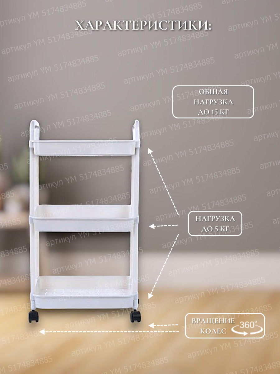 Купить Стеллаж белый в ванную комнату Этажерка для кухни на колесиках напольная металл/пластик Тележка косметологическая