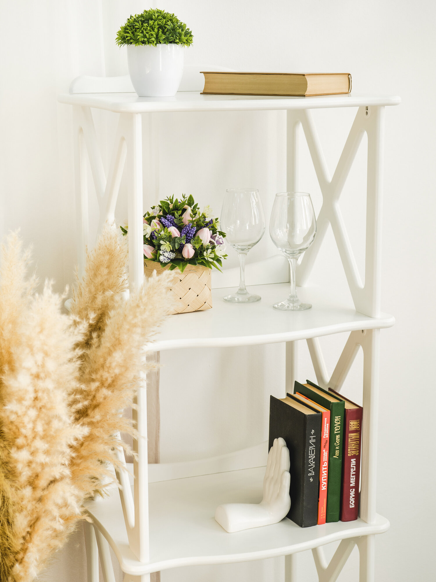 Купить Этажерка-стеллаж деревянный напольный Glider Модерн 3, цвет белый
