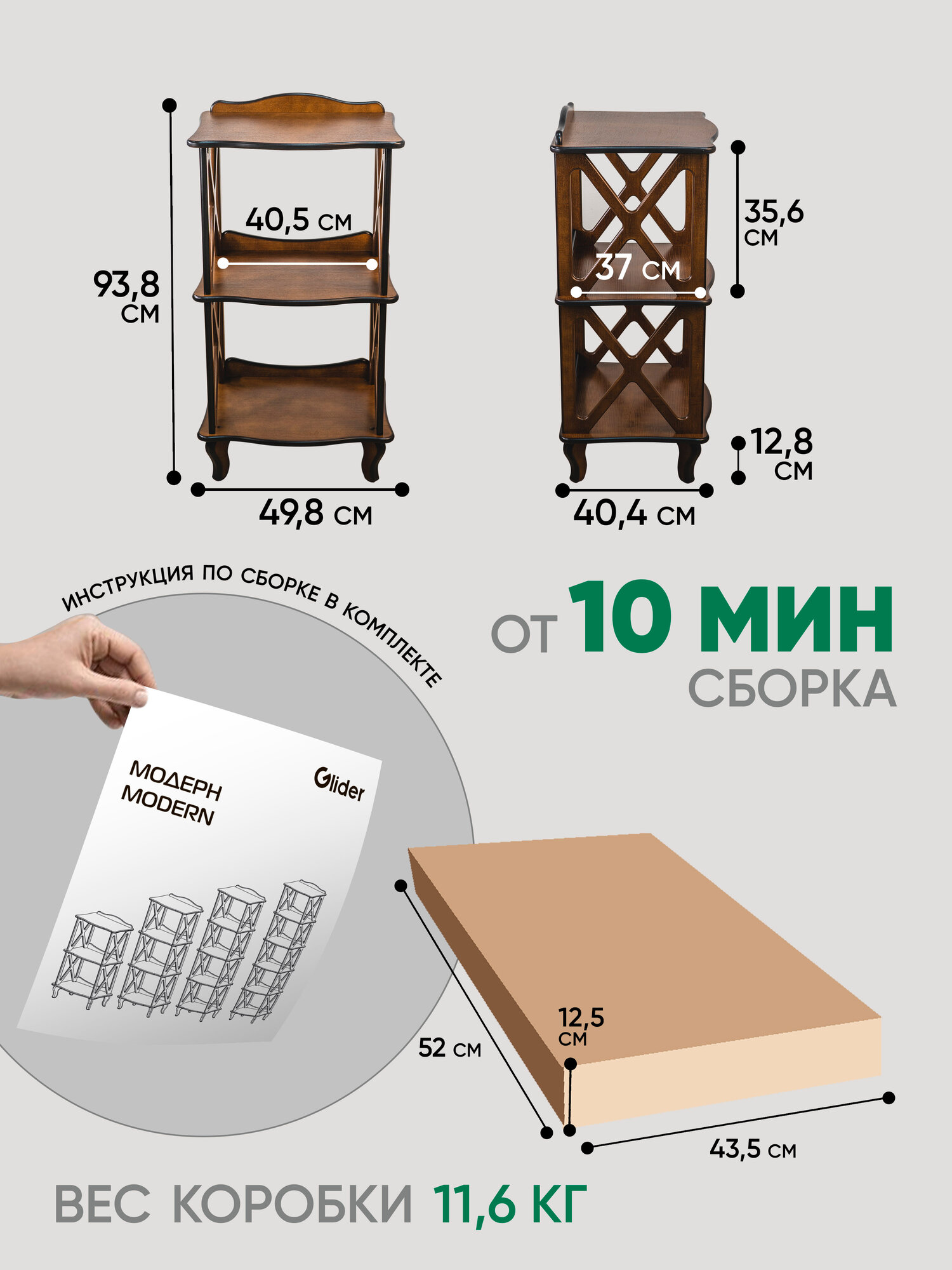 Этажерка-стеллаж деревянный напольный Glider Джульетта 3, цвет коричневый