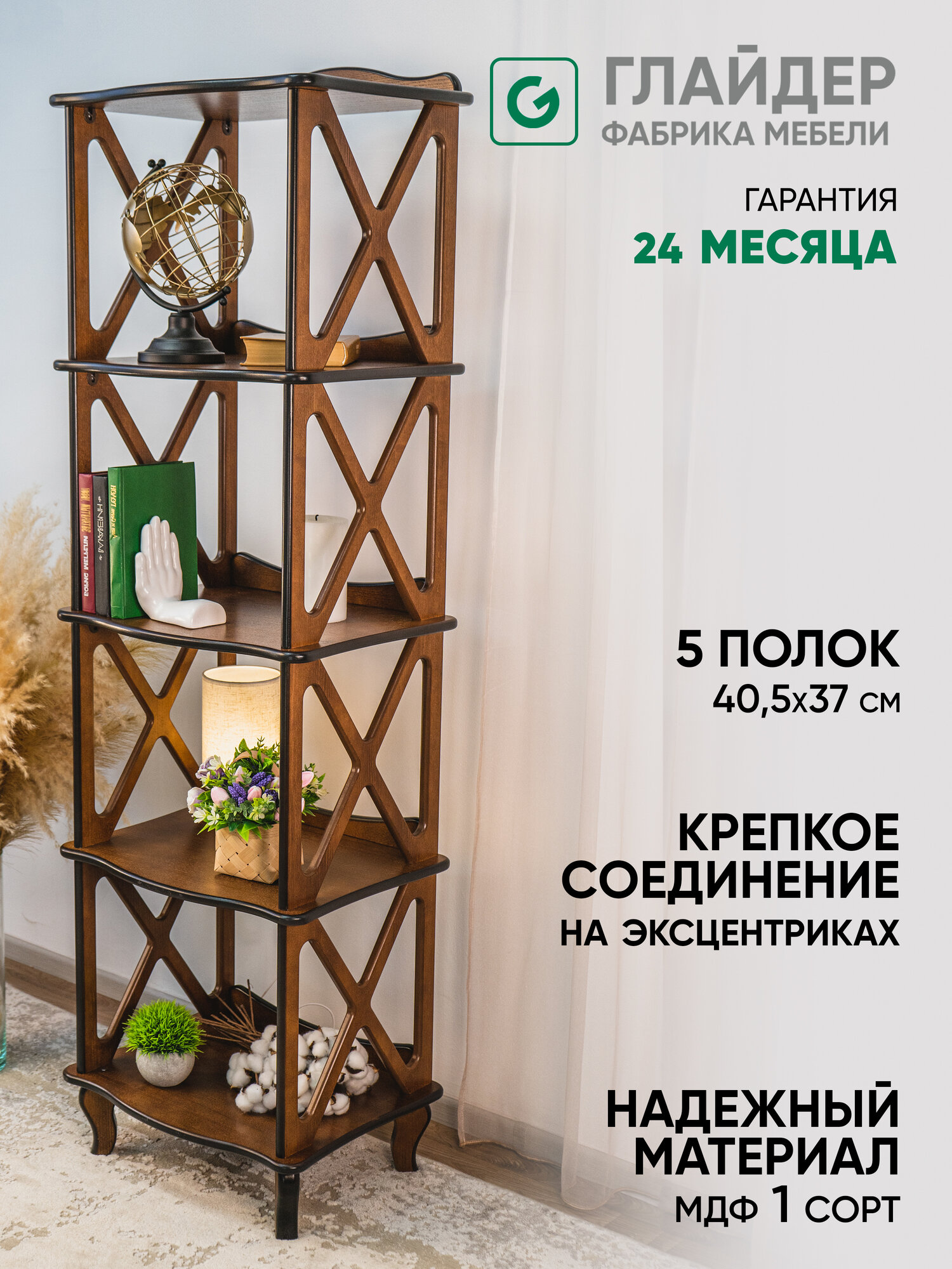 Купить Этажерка-стеллаж деревянный напольный Glider Модерн 4, цвет орех
