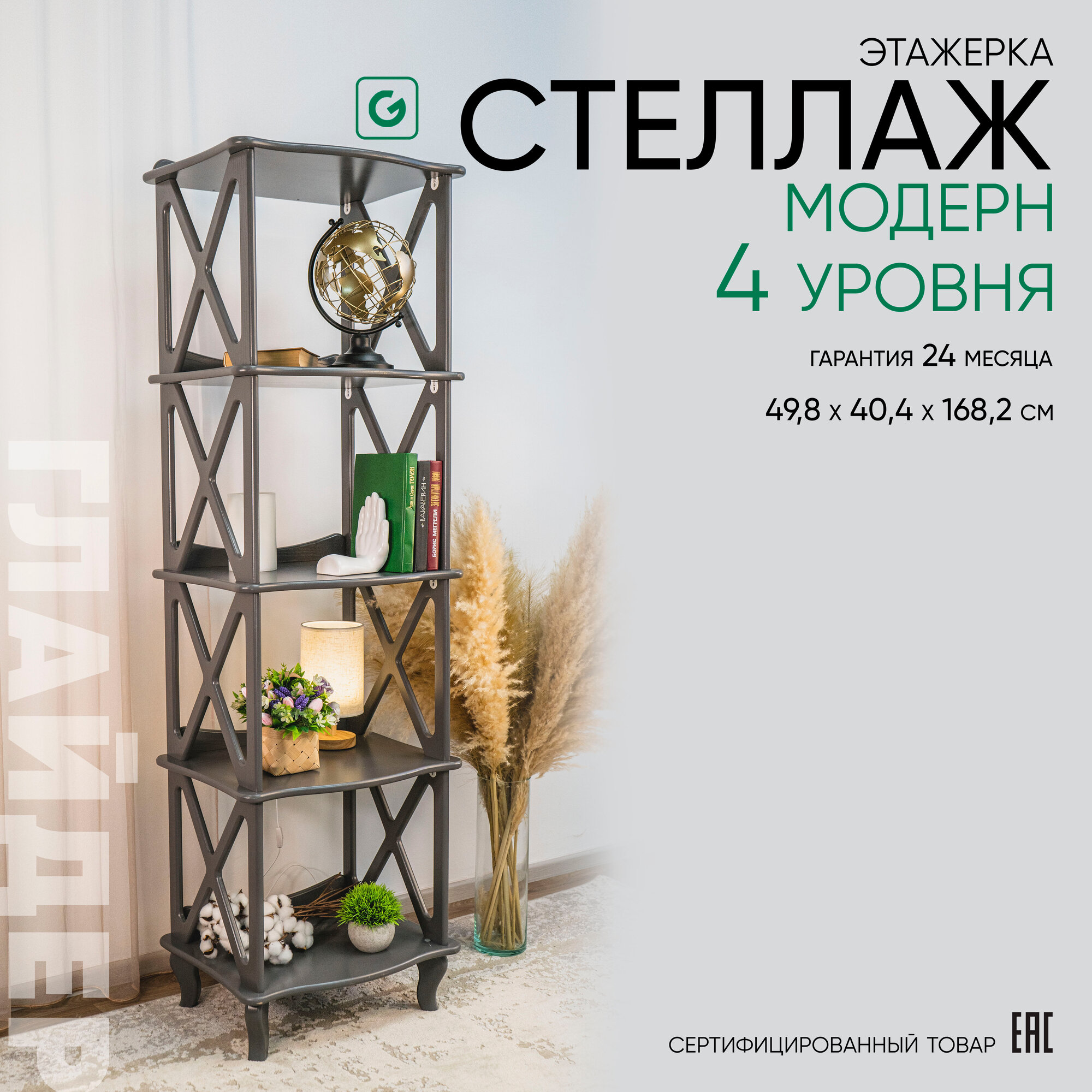 Купить Этажерка-стеллаж деревянный напольный Glider Модерн 4, цвет серый ясень