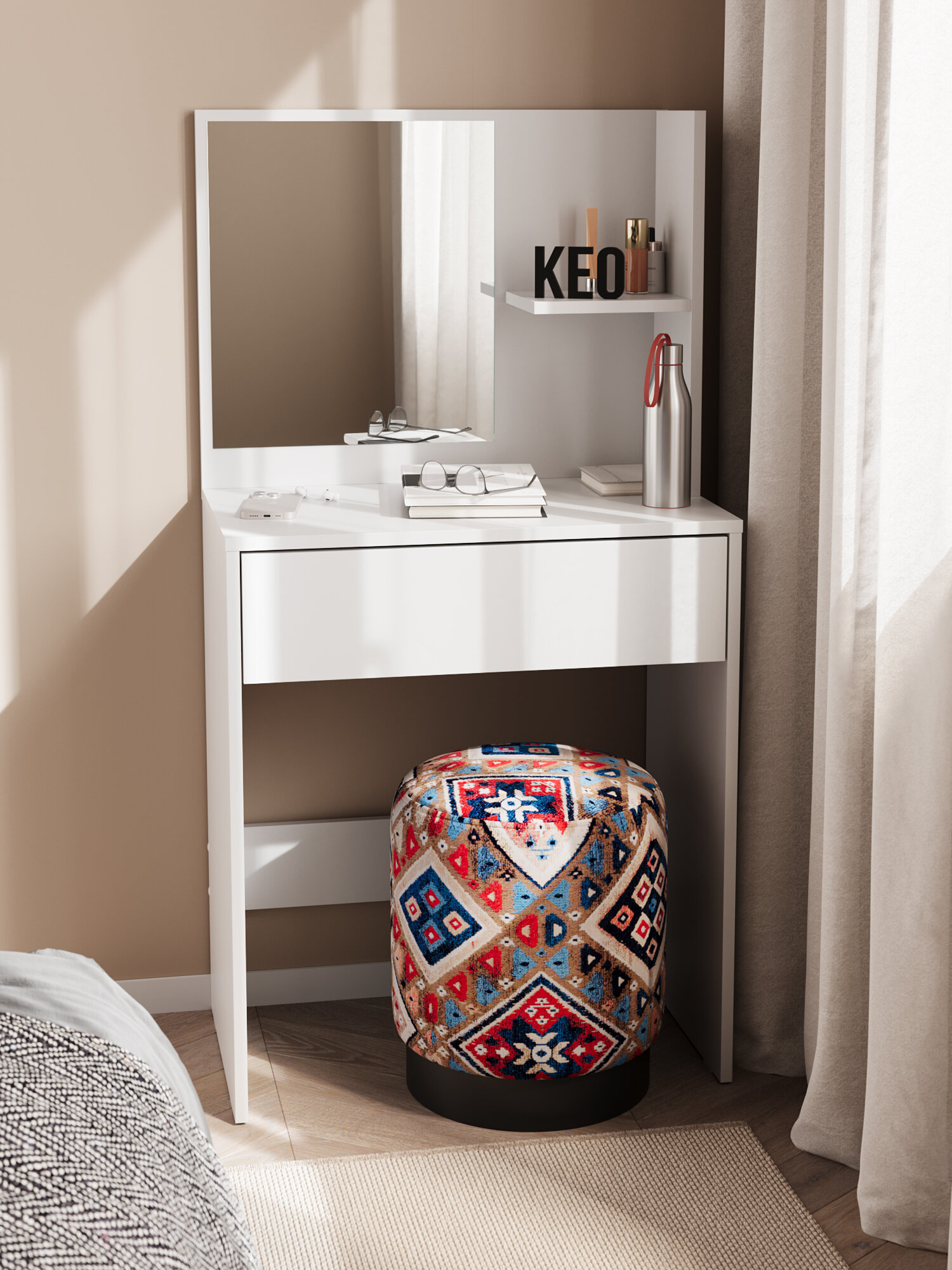 Туалетный столик с зеркалом открытой полкой и выдвижным ящиком Кео СТЛ-110 молочный белый