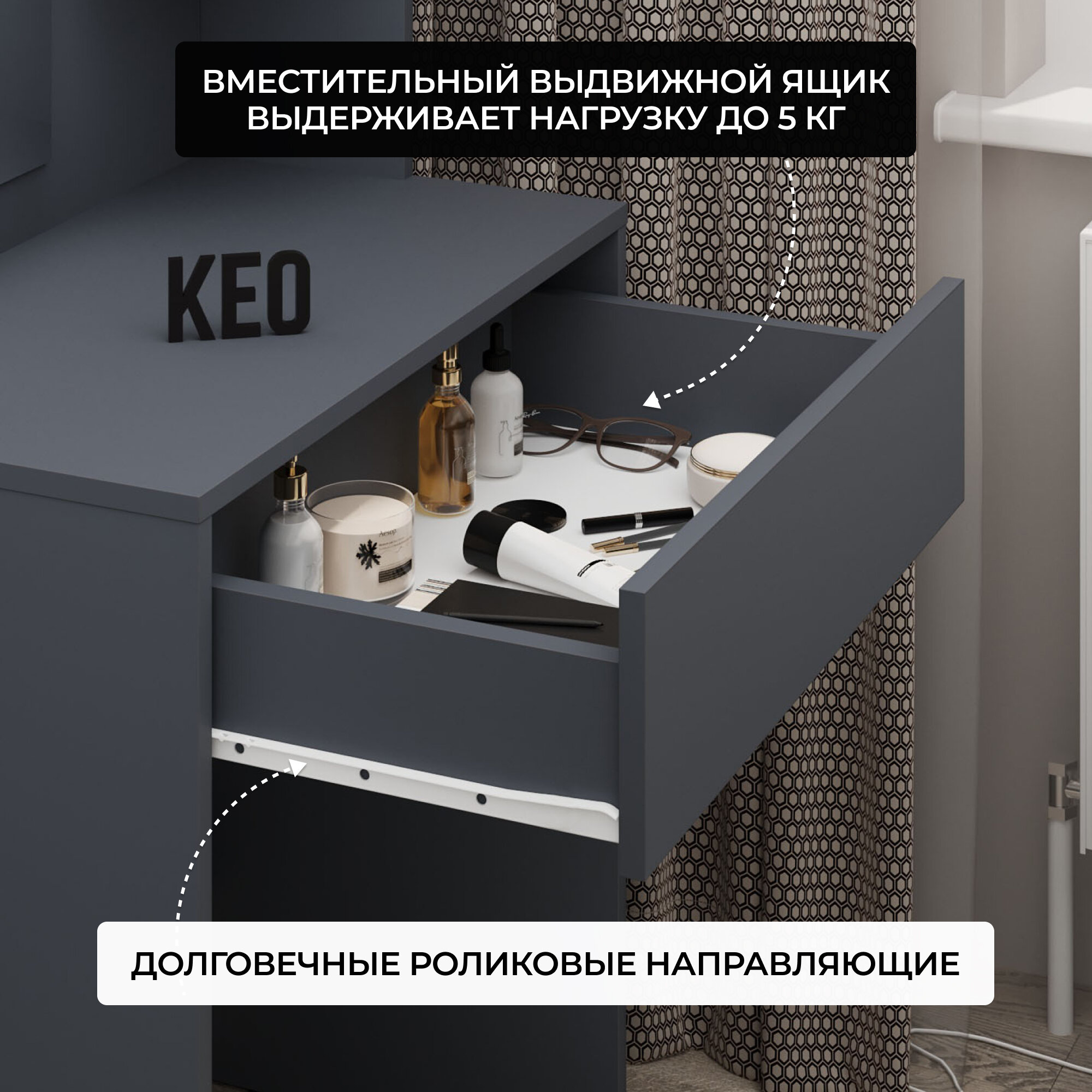 СохранитьТуалетный столик с зеркалом графитовый с открытой полкой и выдвижным ящиком Кео СТЛ-110 графит интересное: