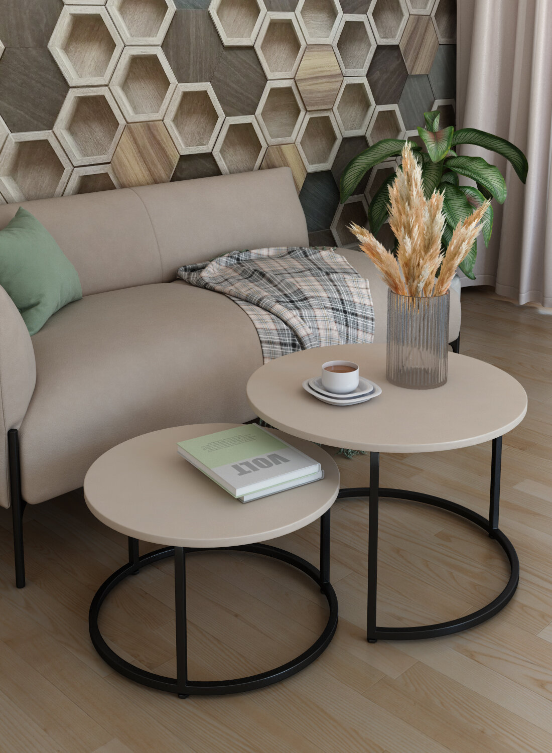 Журнальный столик DiX Home, лофт, 2шт, круглый, металлический каркас, ЛДСП, 60х60х50см