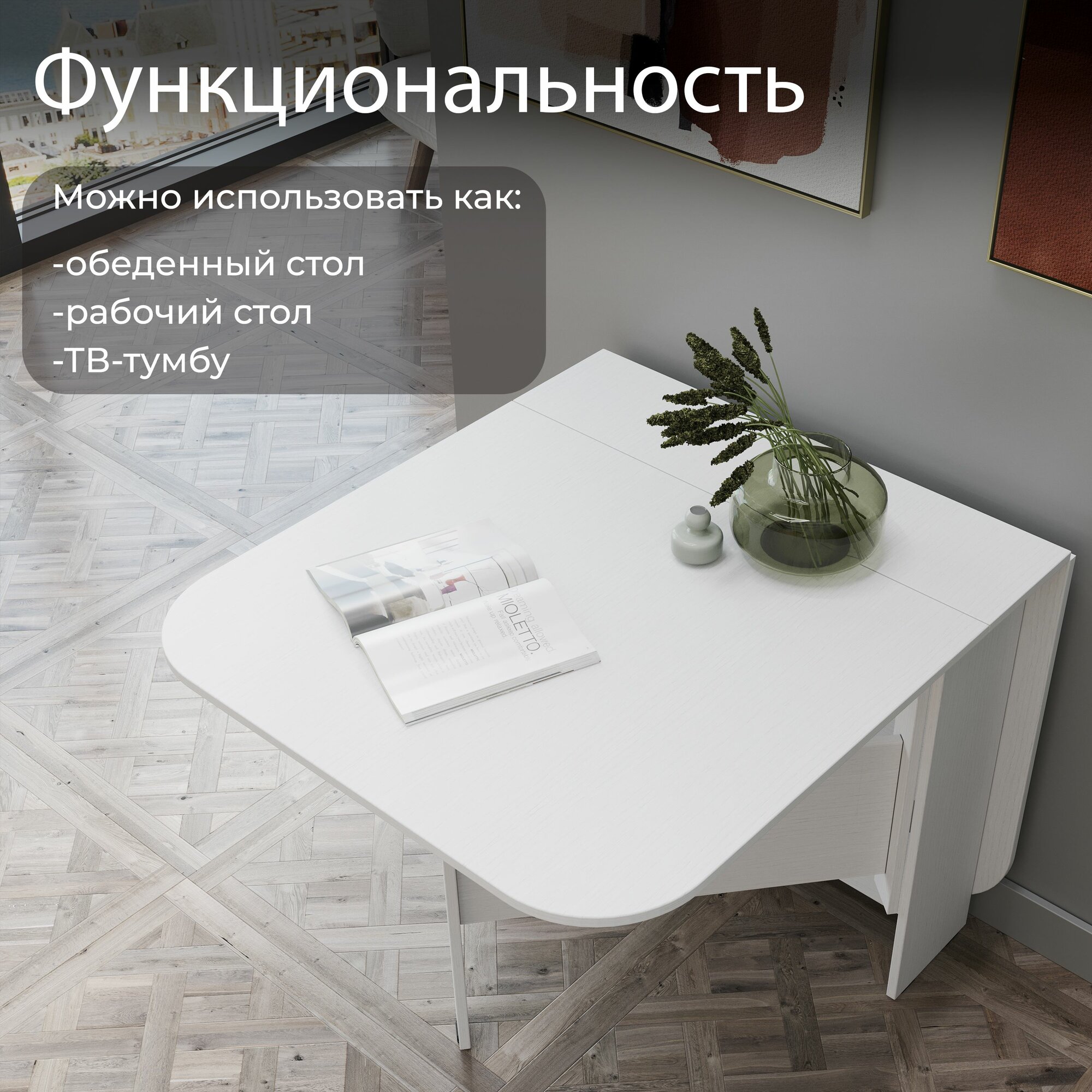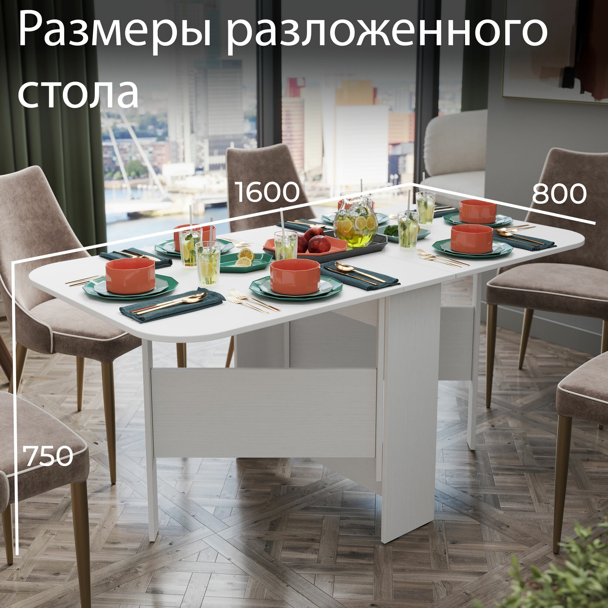 Стол-книжка раскладной, стол обеденный книжка белый, (ВхДхГ) 75х160х80 см, Тип 1