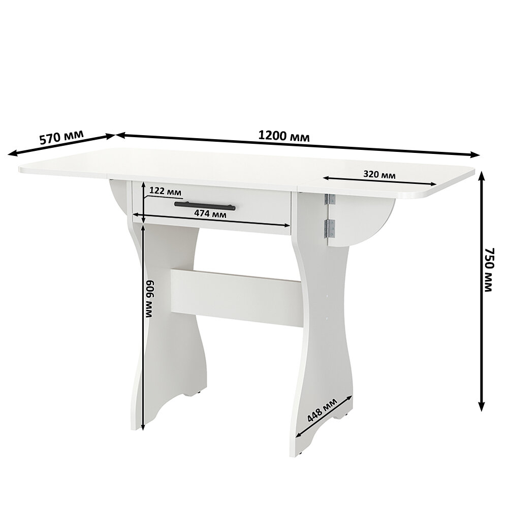 СохранитьСтол раскладной с ящиком Гранд Кволити 6-02.120ТМ цвет белый, 120(60)х57х75 см. интересное: