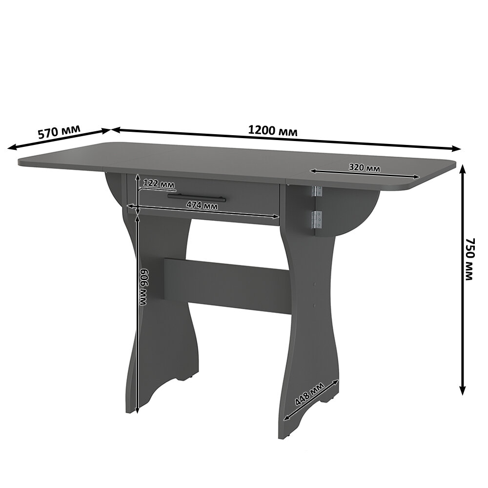 СохранитьСтол раскладной с ящиком Гранд Кволити 6-02.120ТМ цвет графит, 120(60)х57х75 см. интересное:
