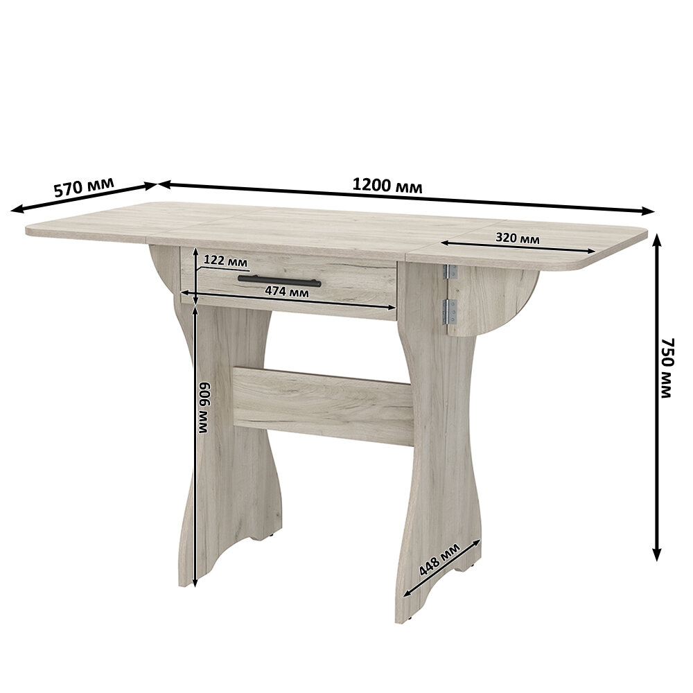 СохранитьСтол раскладной с ящиком Гранд Кволити 6-02.120ТМ цвет дуб крафт серый, 120(60)х57х75 см. интересное:
