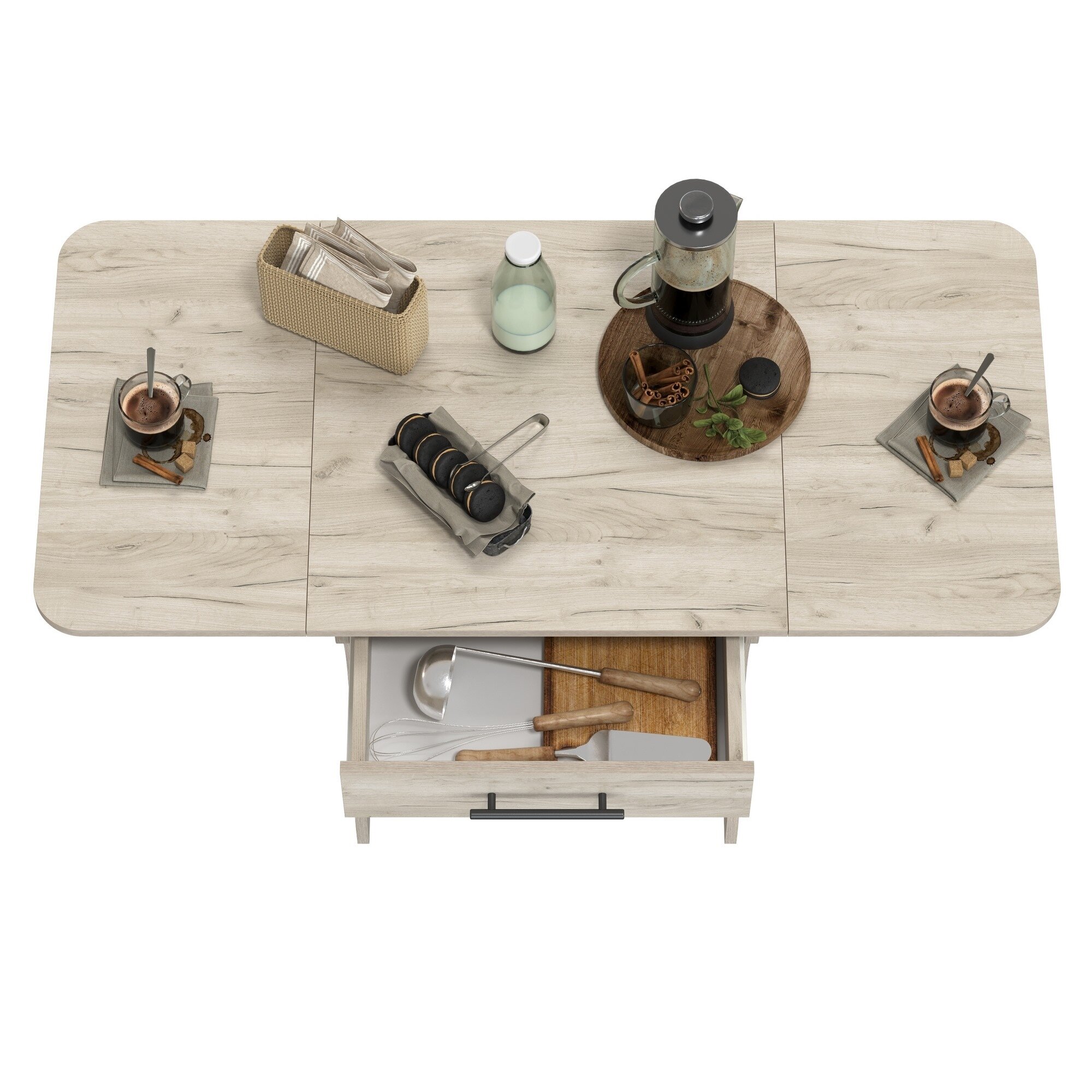 Стол обеденный раскладной с ящиком 6-02.120, цвет ясень шимо светлый, ШхГхВ 120х57х75 см., 60х57х75 см. сложенный
