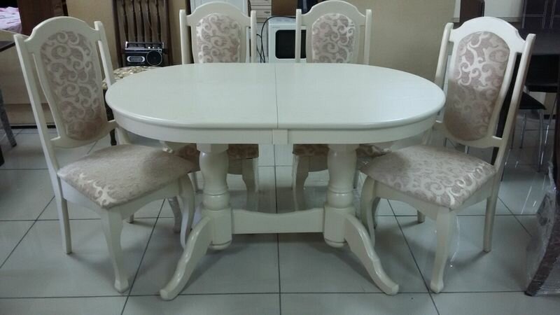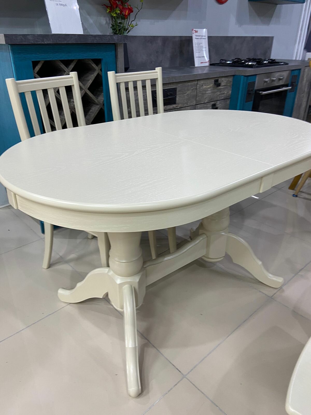 Купить Стол обеденный раздвижной Презент, овальный (массив березы, мдф, шпон), 130х80х78см, слон. кость