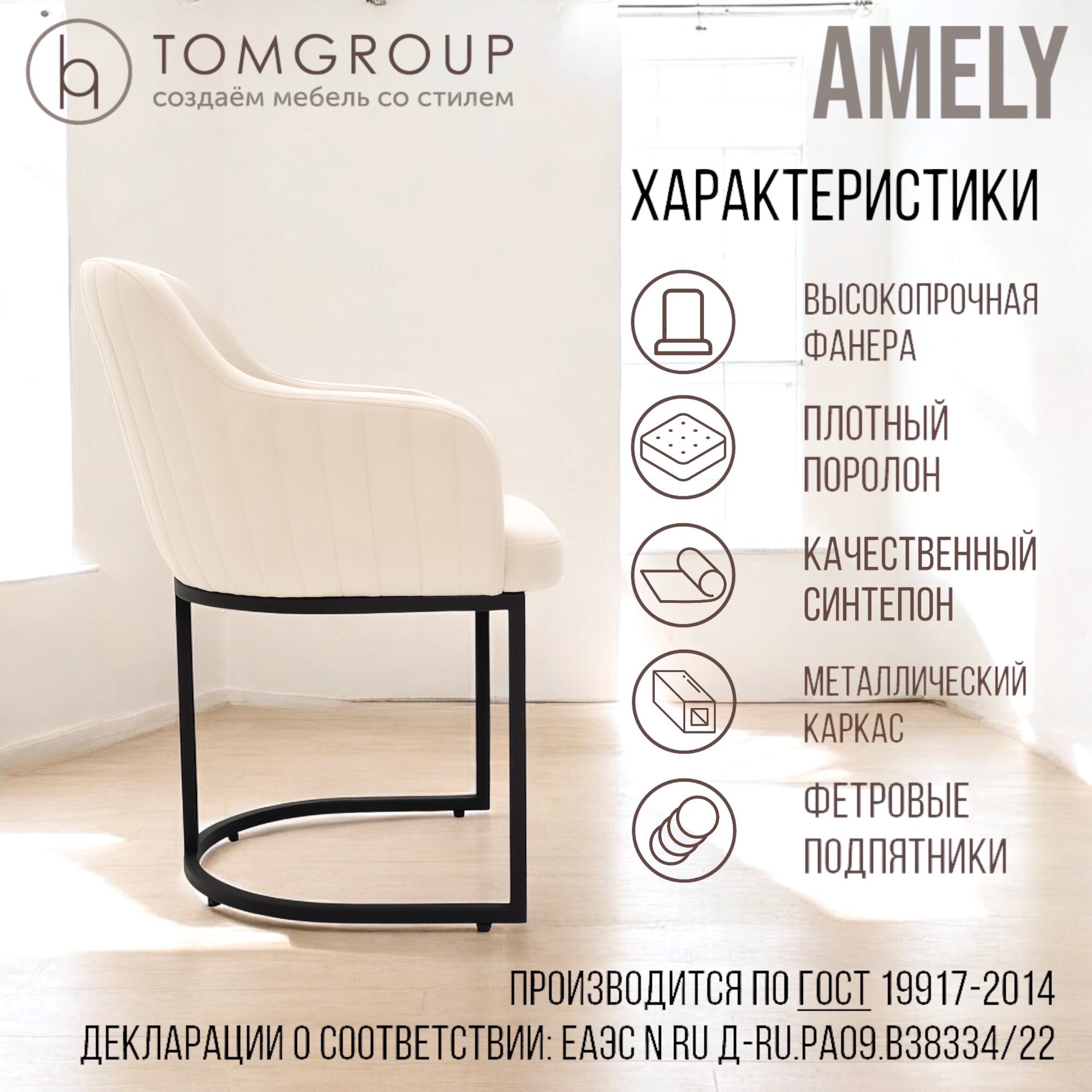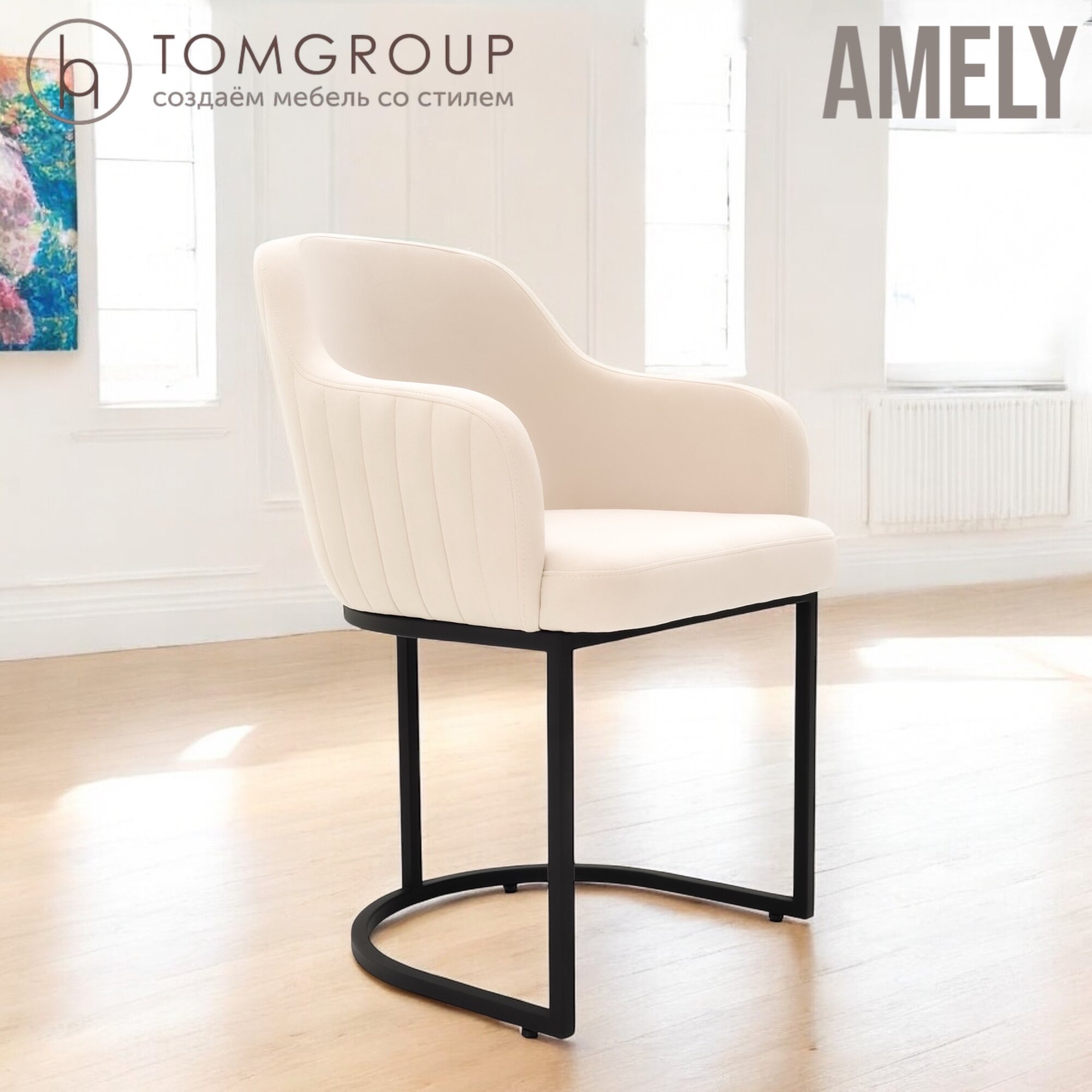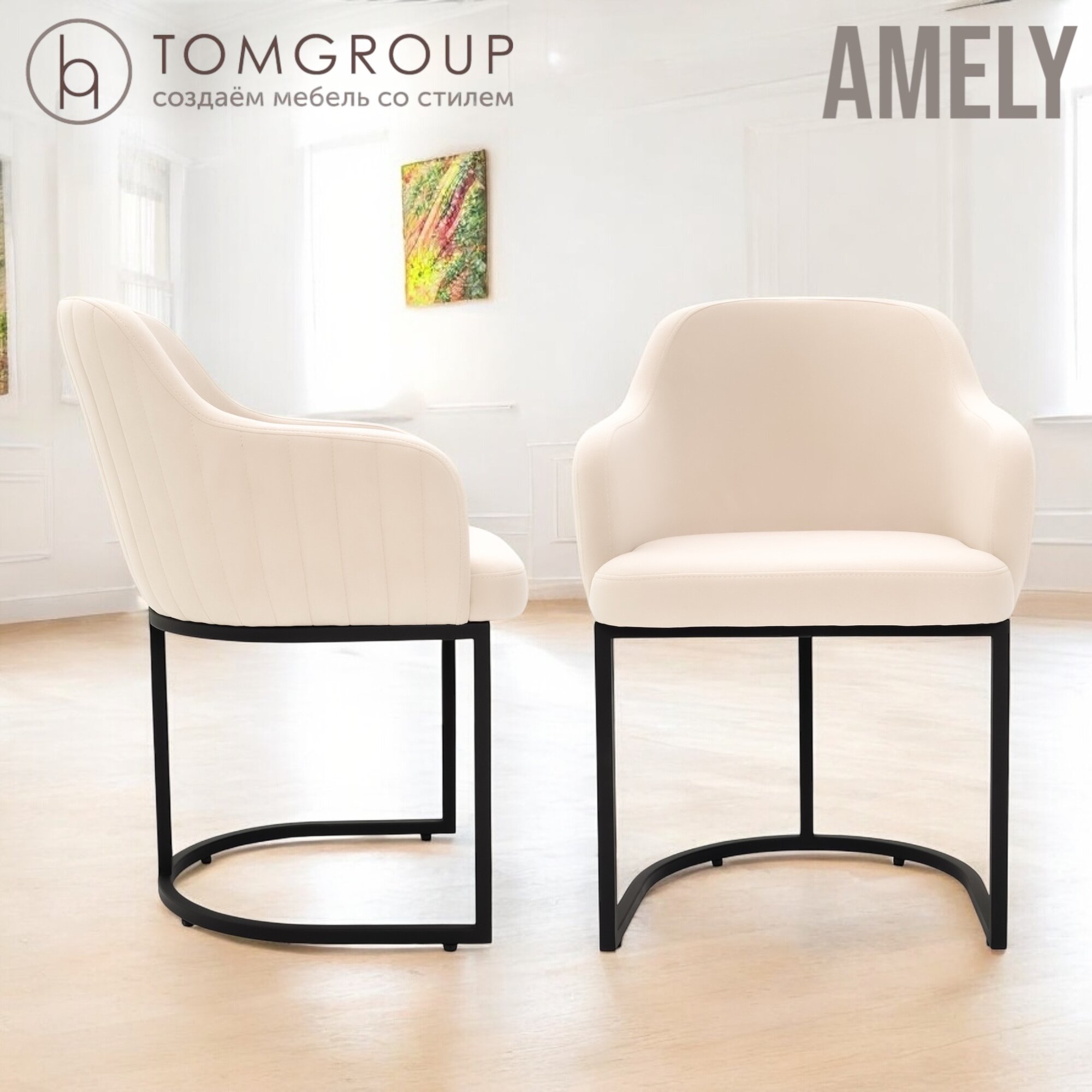 СохранитьСтул TOMGROUP Amely Ivory/Black, ГОСТ, черный каркас, бежевый велюр — дом, офис, салоны, подлокотники интересное: