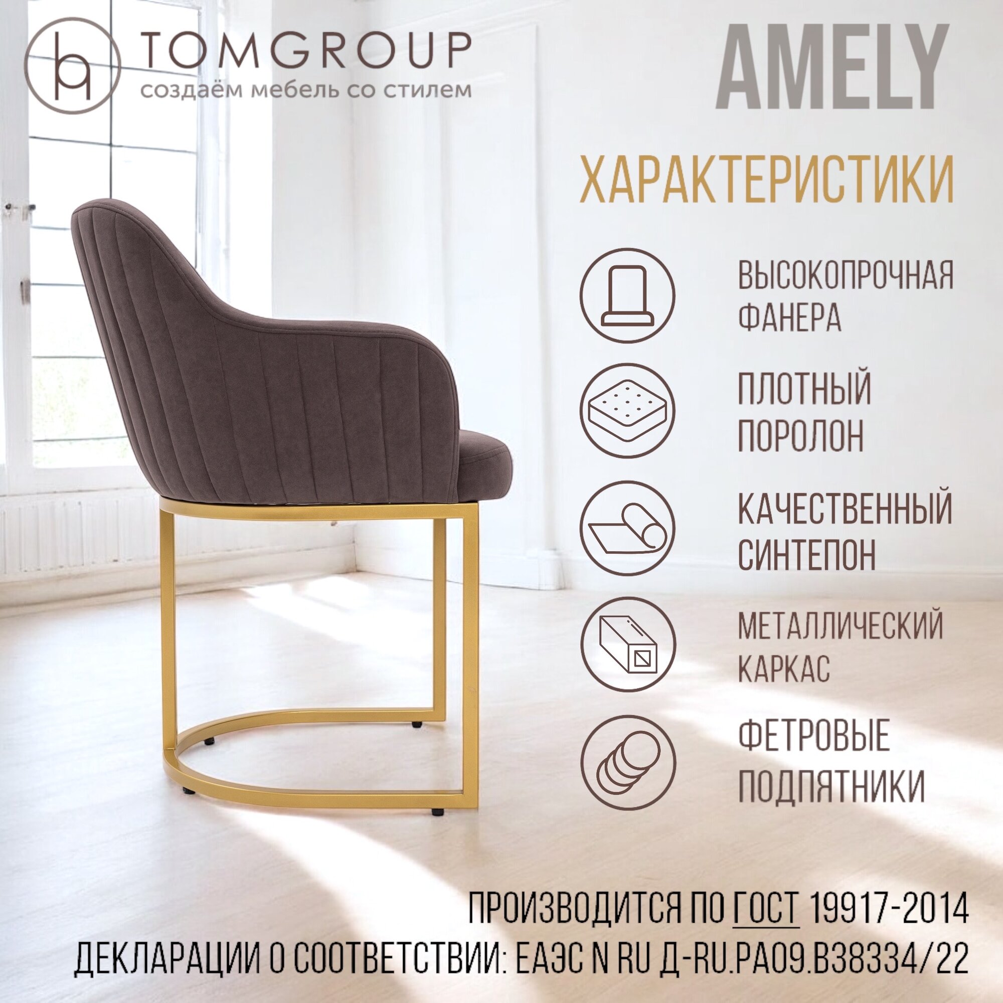 Стул TOMGROUP Amely Bitter/Gold, ГОСТ, золотой каркас, темно-коричневый велюр — классика, лофт, дом, подлокотники