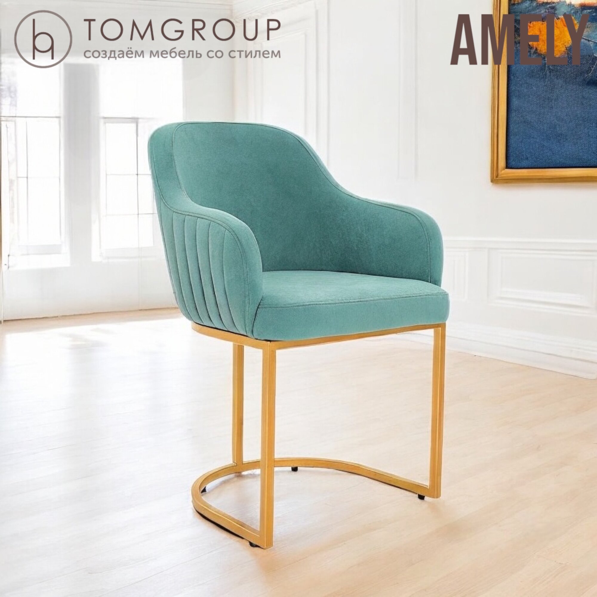TOMGROUP Стул Amely Mint (Тиффани) / Gold, стул с золотым каркасом графит, с подлокотниками, для кухни