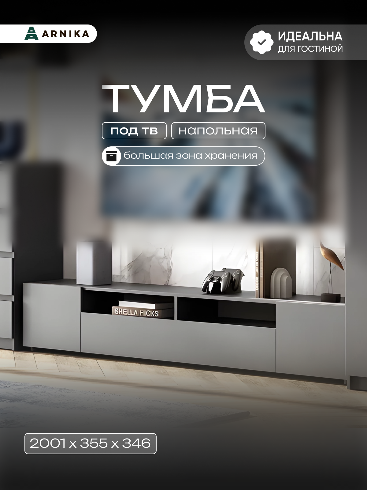 Тумба ARNIKA Денвер, напольная, с ящиками, ЛДСП, цвет серый/графит интересное: