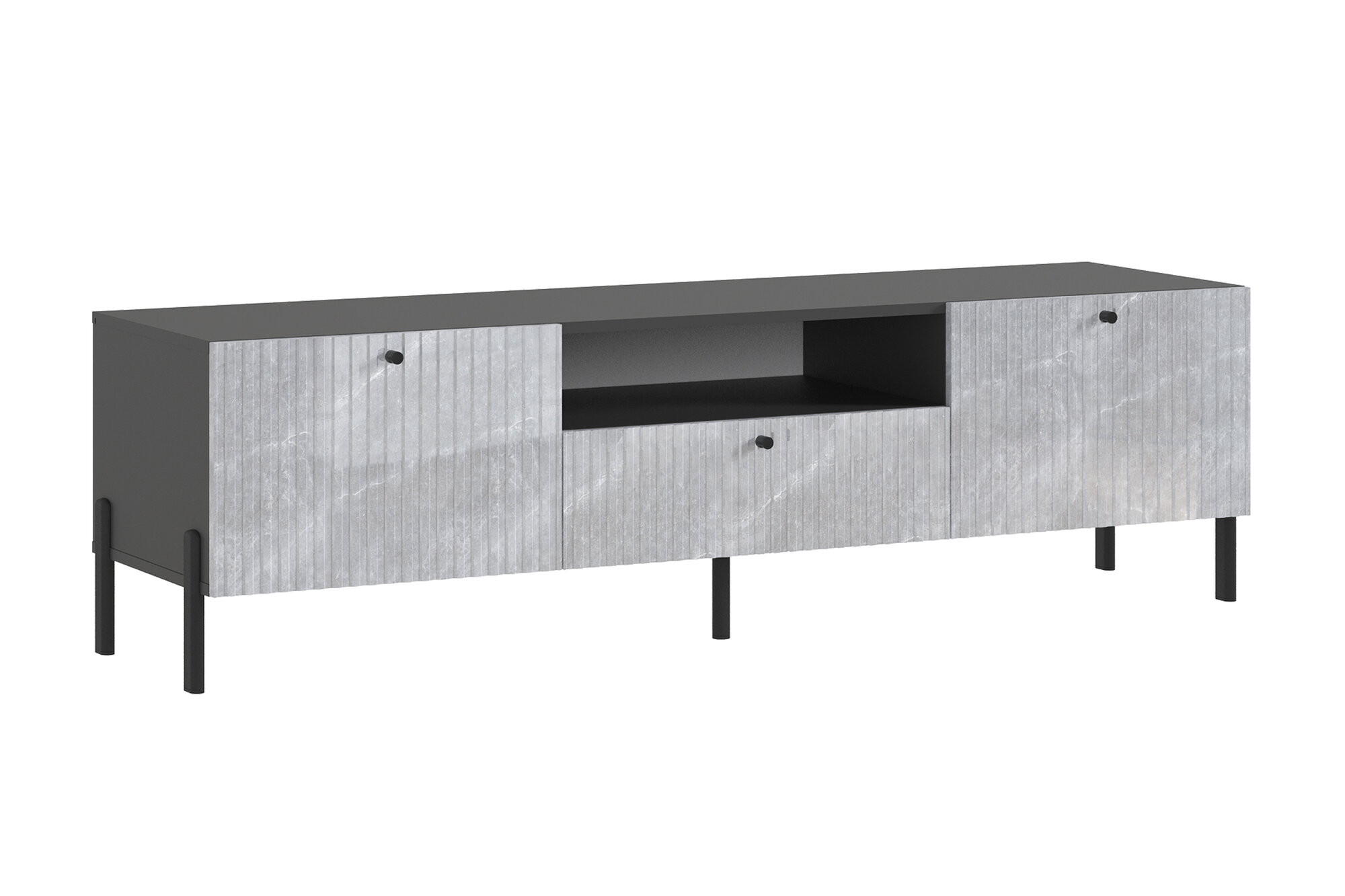 ТВ-тумба МИФ"Оливия" 160*46*44.2 МАЛАЯ графит/мрамор глянец, скандинавский стиль