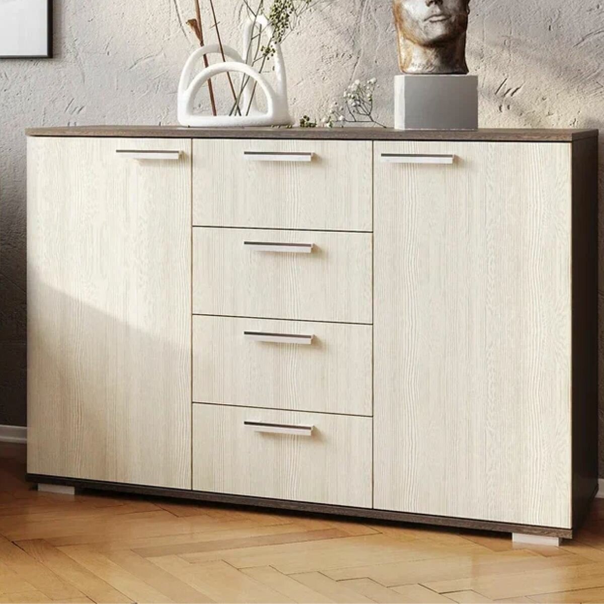 Комод для одежды большой БТС Мебель Стандарт 6, 88,2х46х92см, с 4 ящиками, цвет венге/лоредо