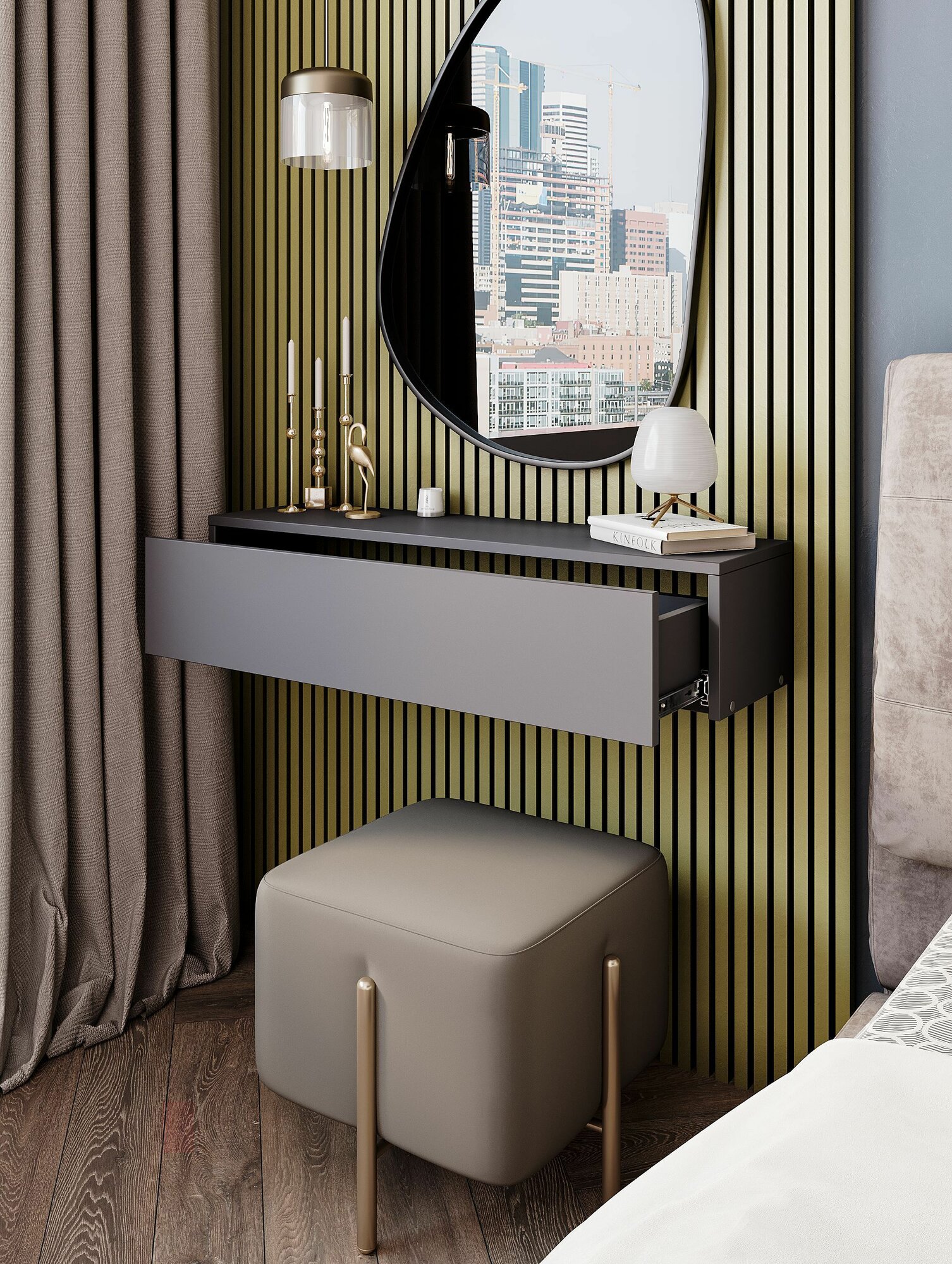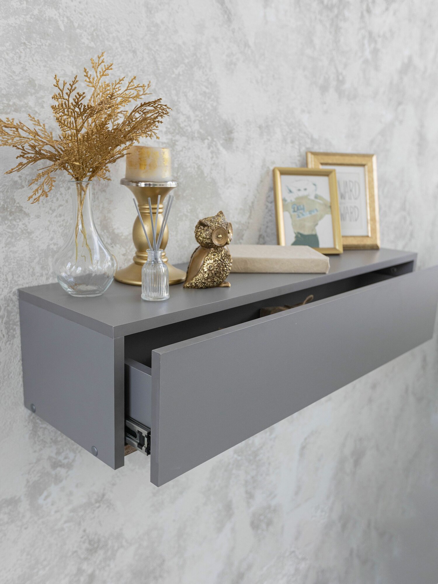 Подвесная консоль с ящиком для спальни 62 см