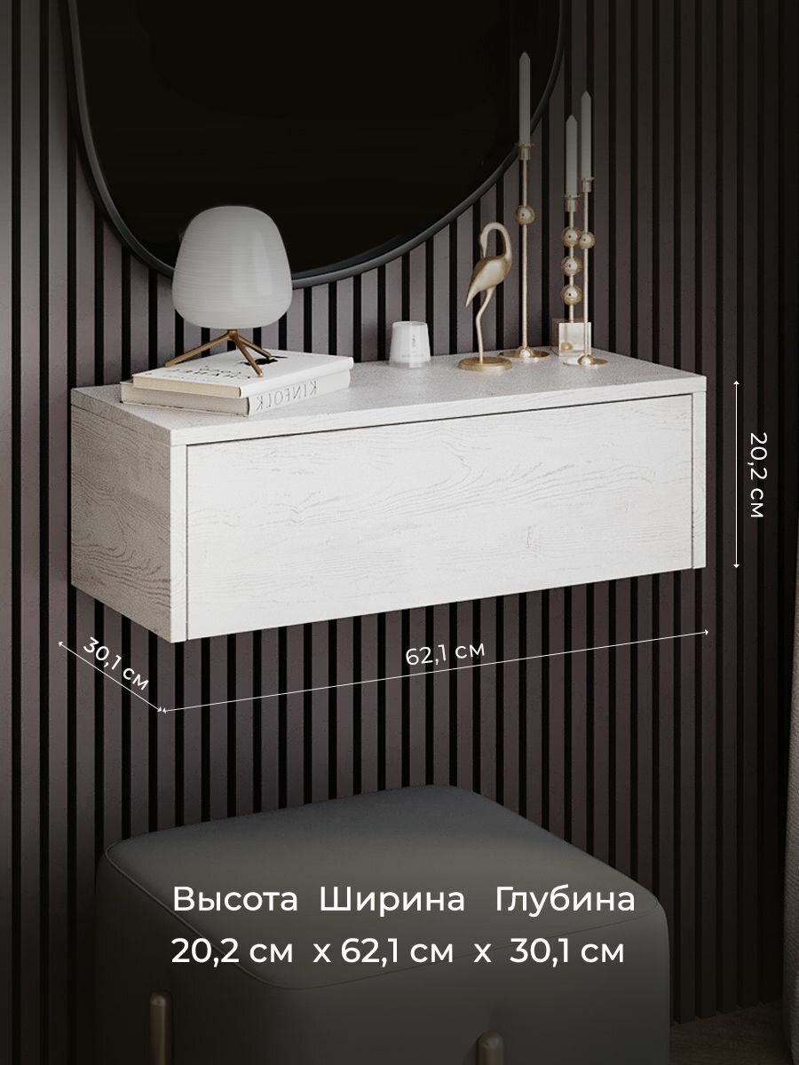 Подвесная консоль с ящиком для спальни 62 см
