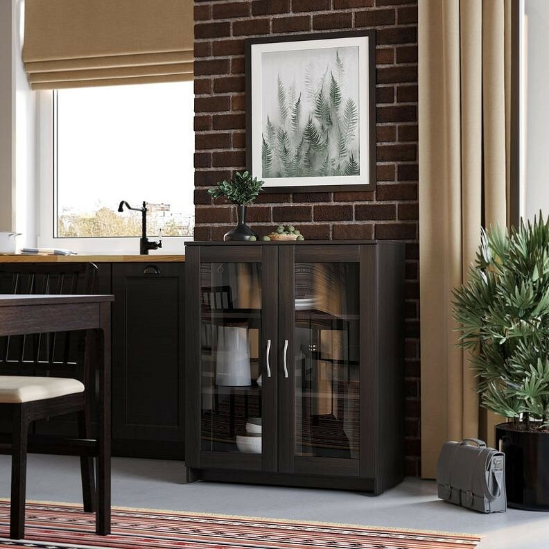 Бримнэс / сириус тумба шведский стандарт 2 двери со стеклом 78х95 Дуб Венге