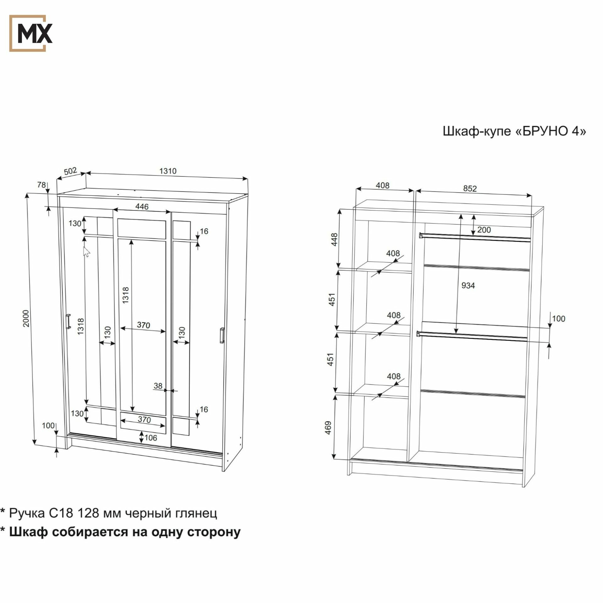 Шкаф-Купе Бруно-2, Тайм/ Бассо Белый, ЛДСП с зеркалом, полками, штангами, для прихожей, спальни 1310х2000х500 мебельный РАЙ