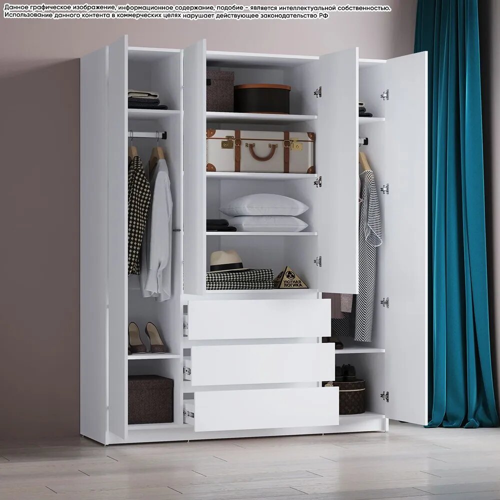 Шкаф четырехдверный Квазар ШК 04 220*160*50 Белый интересное:
