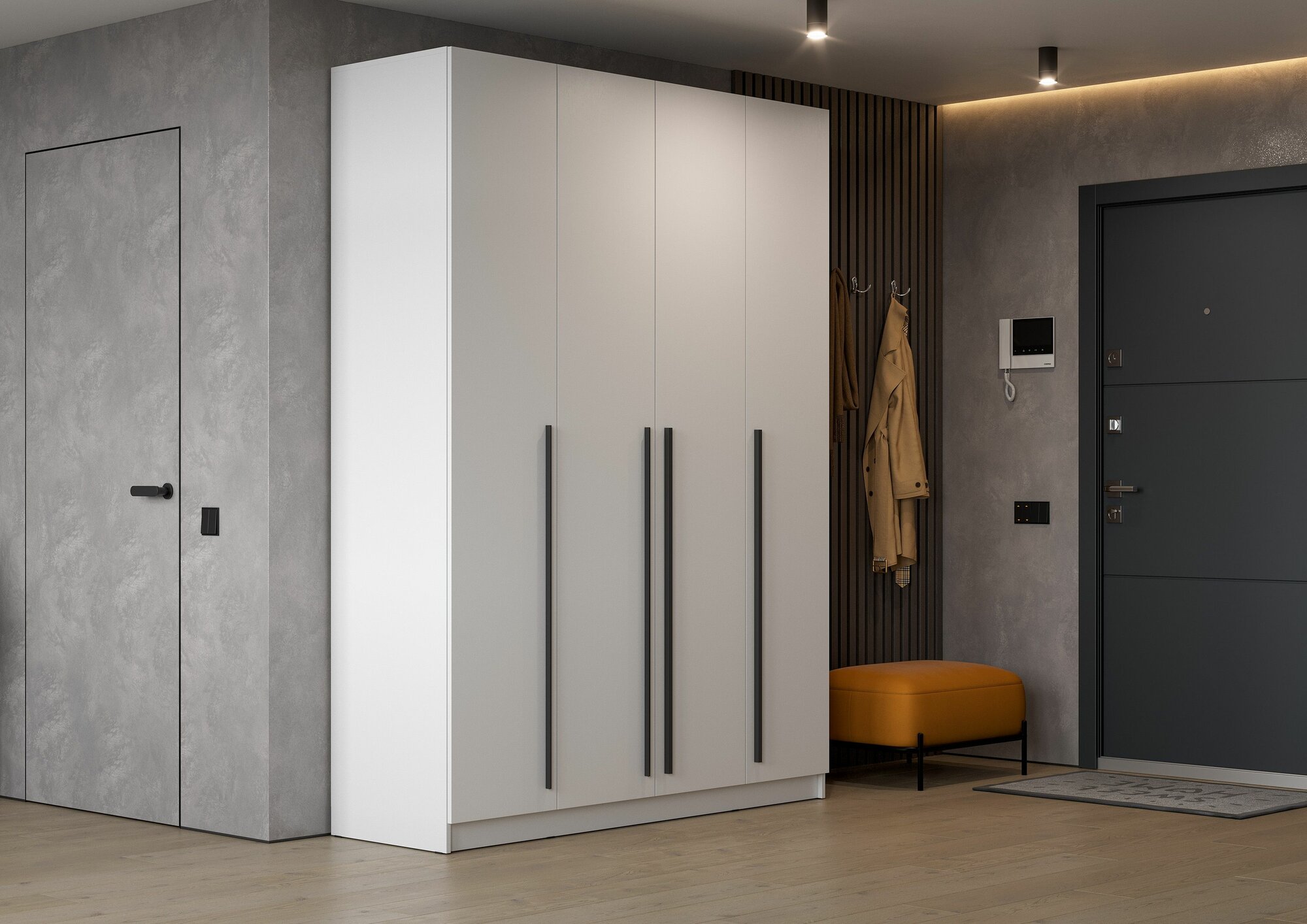 | Особенности | доводчики, модульный, с зеркалом, угловая конструкция, штанга для вешалок |