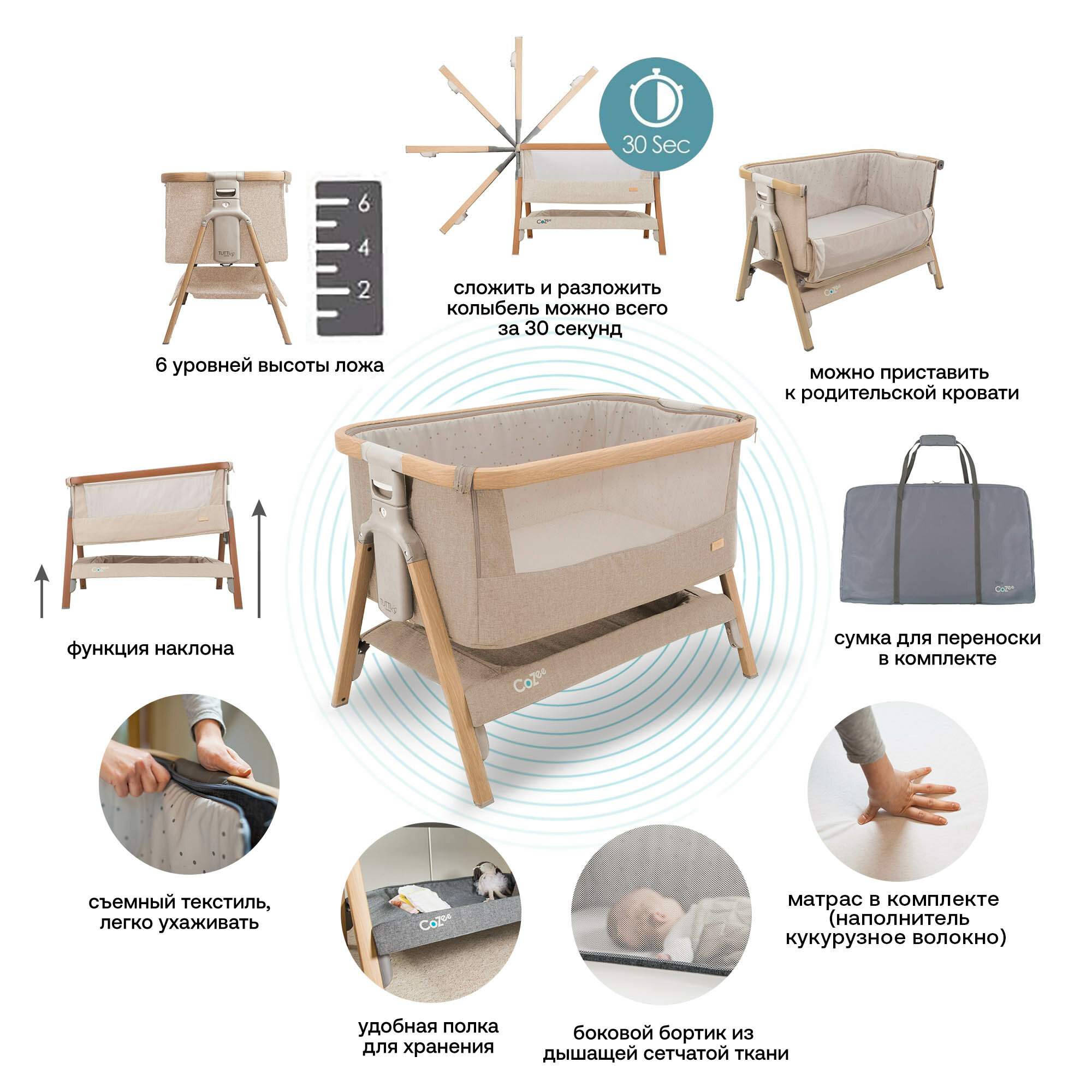 Прикроватная колыбель - Tutti Bambini CoZee, цвет Ecru / Scandinavian Walnut (Бежевый / Скандинавский орех)