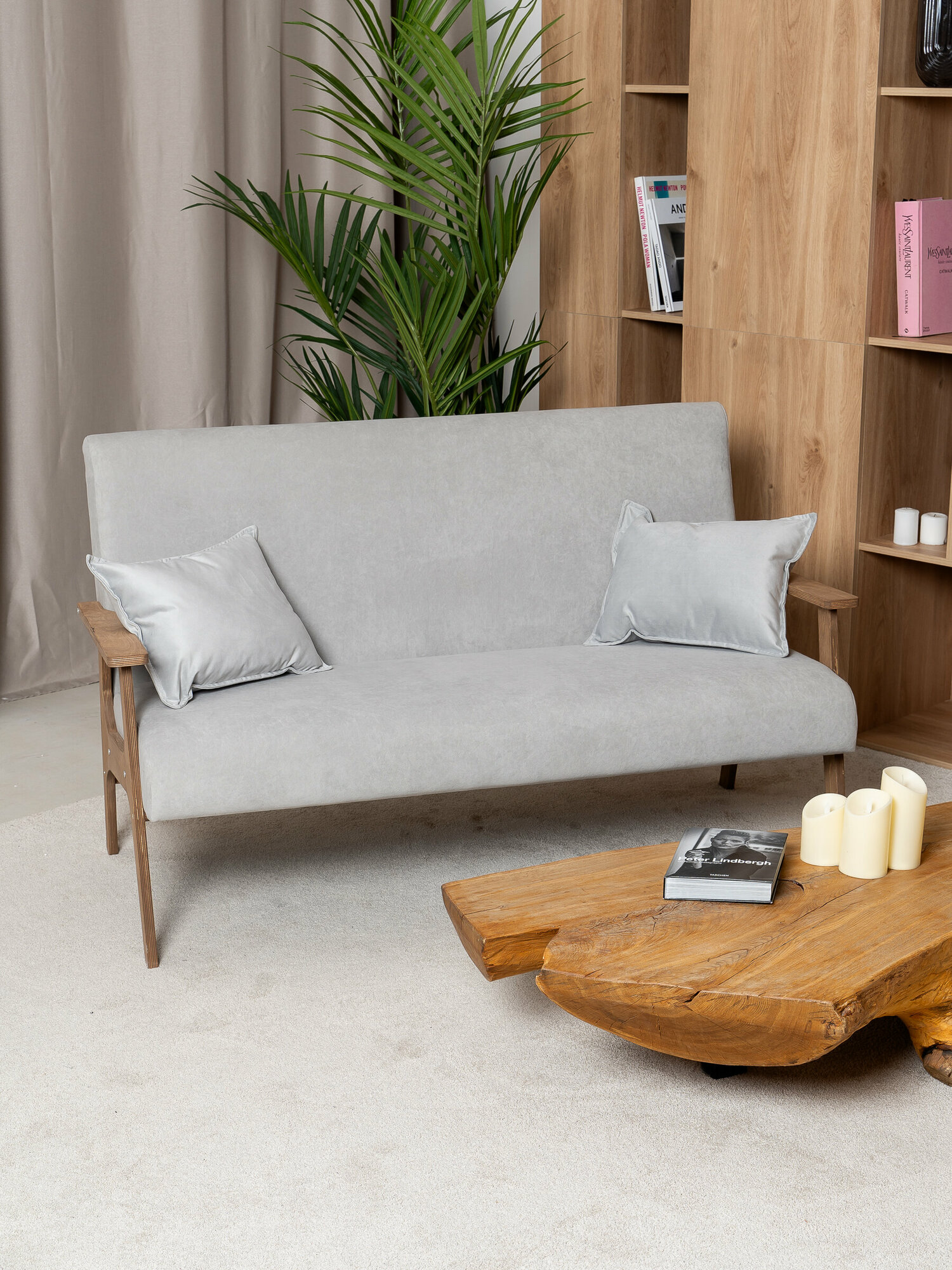 Прямой диван Relax, светло серый,коричневое масло 2-х местный, 138x75x80