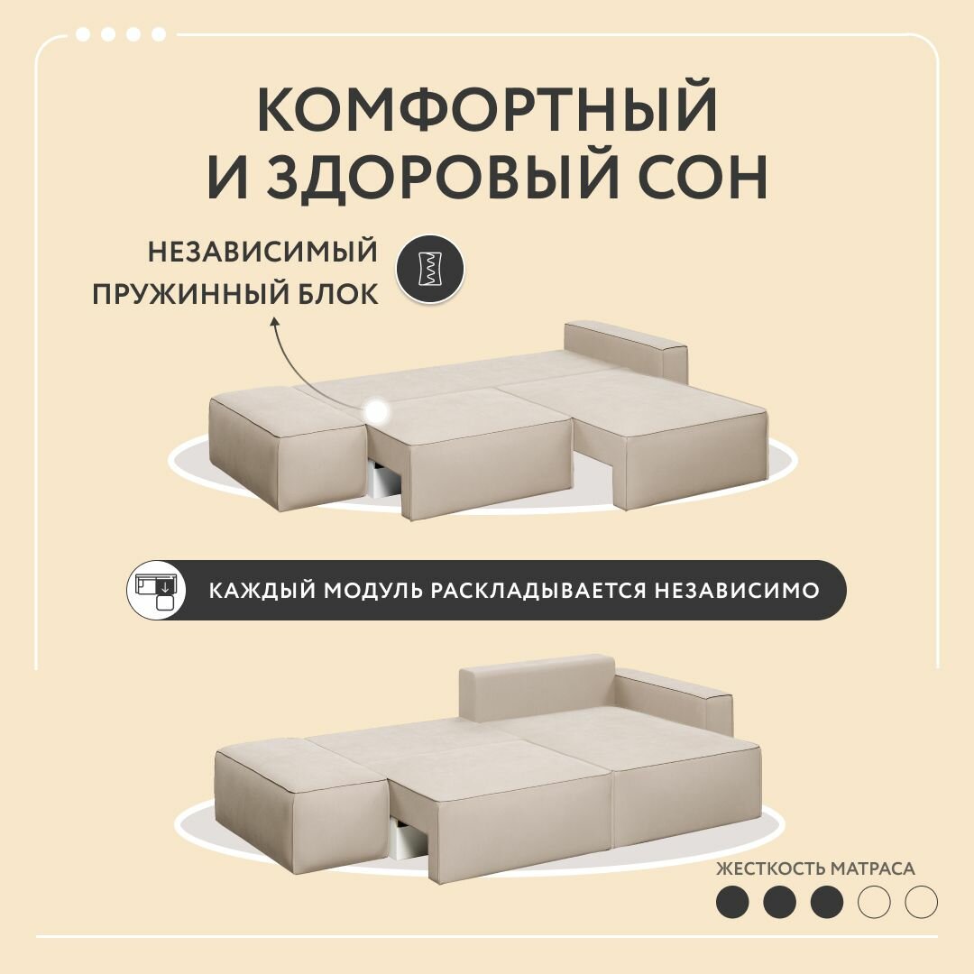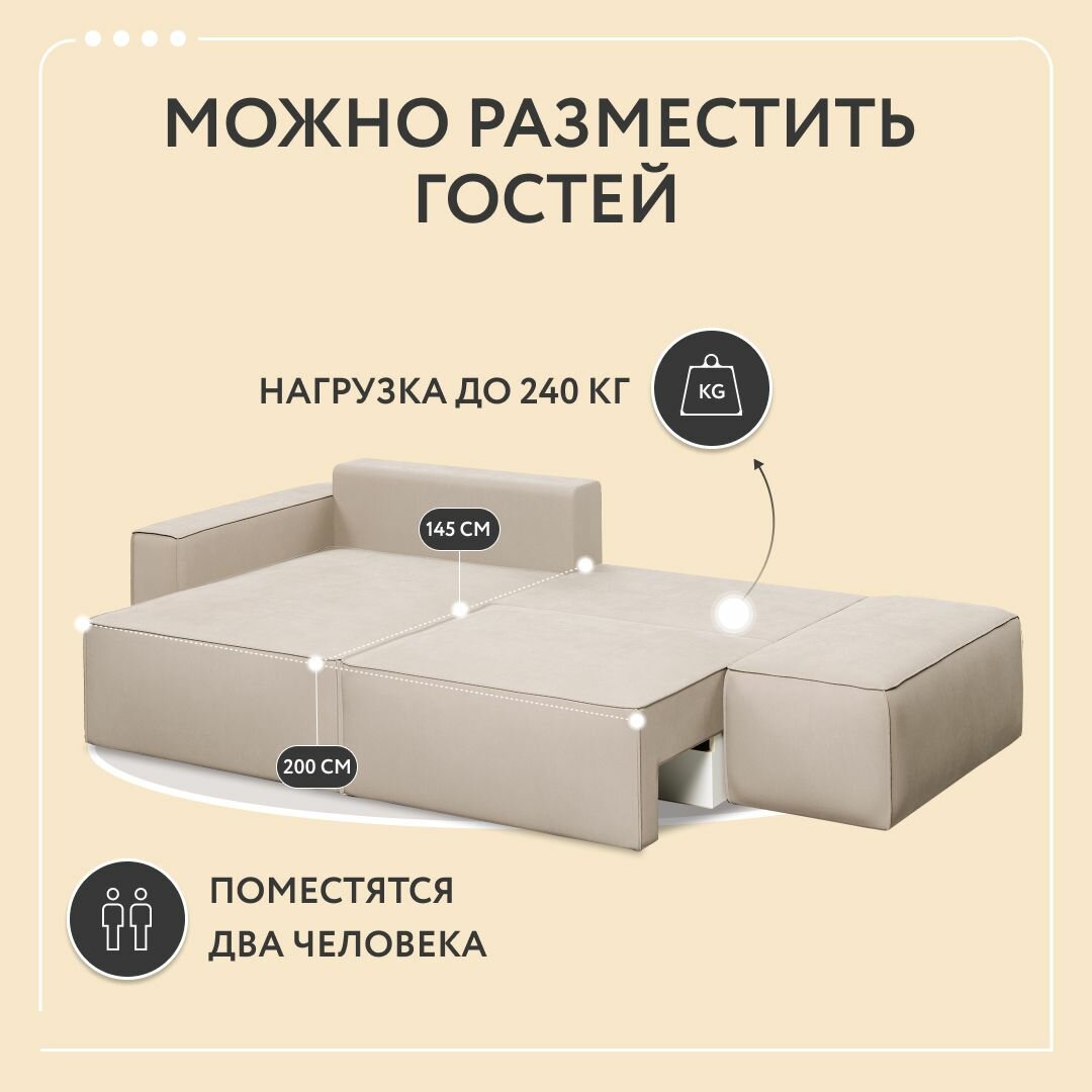СохранитьУгловой диван-кровать двухспальный с банкеткой D1 Корсо в гостиную, бежевый, 269x176x80 интересное: