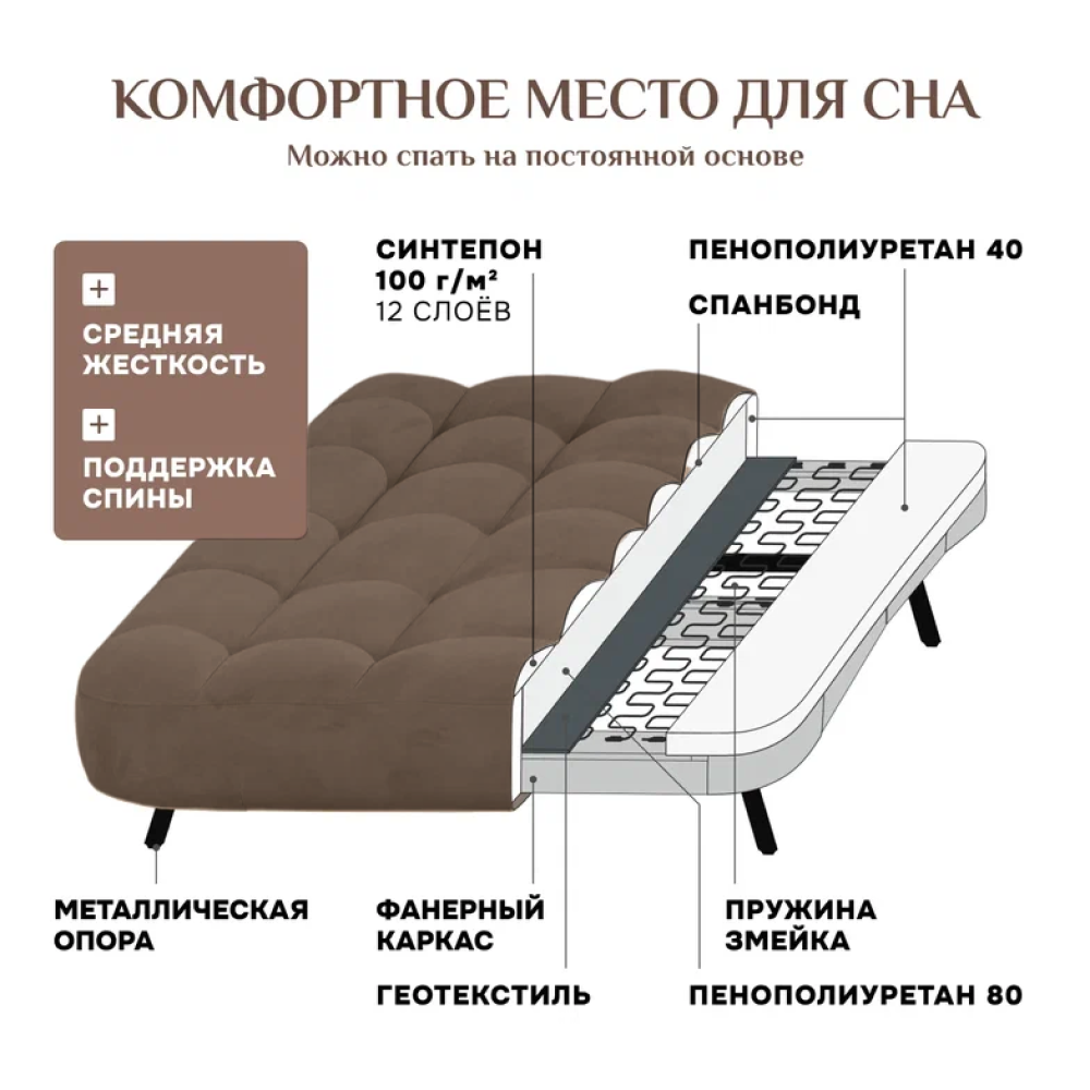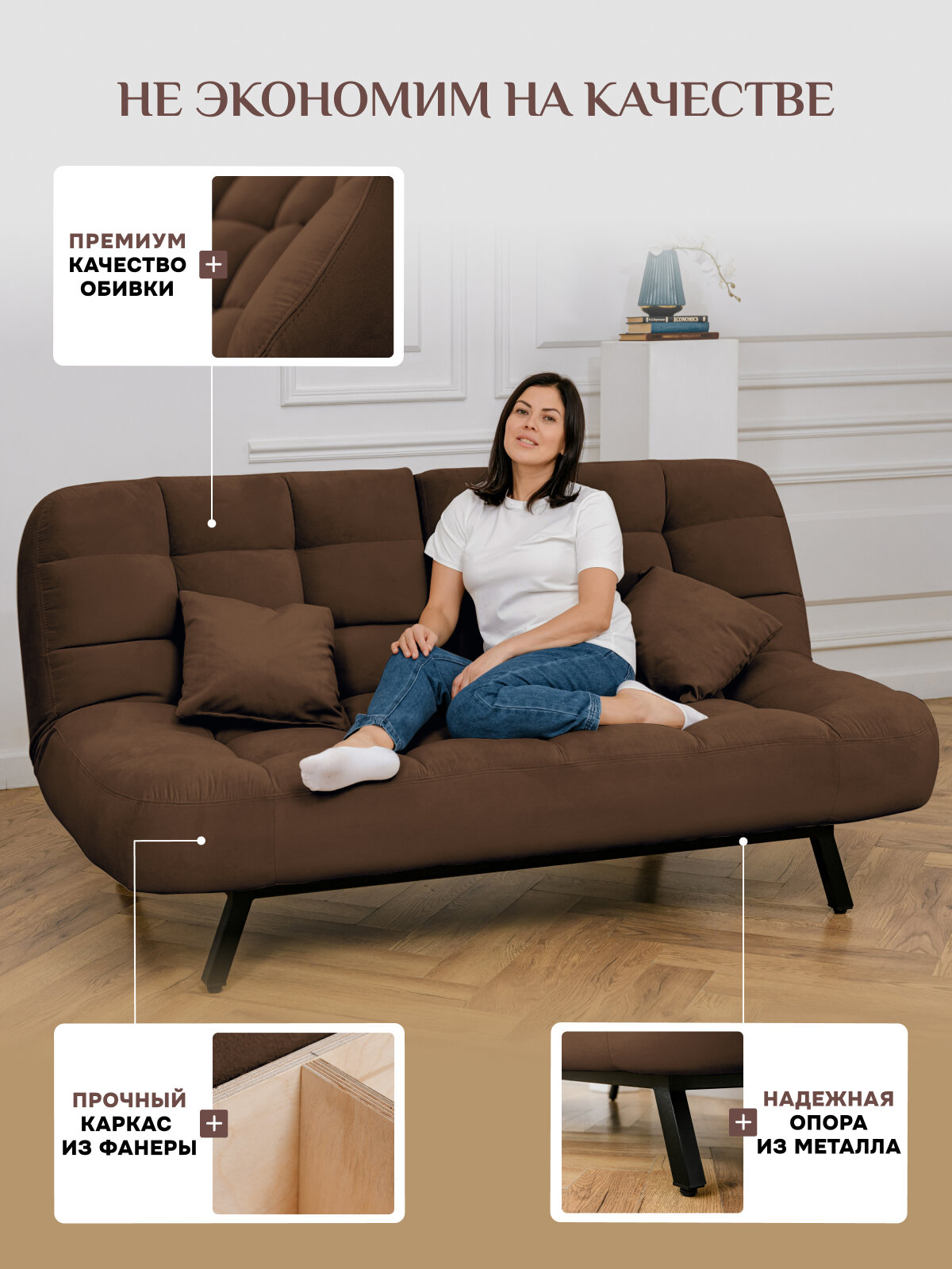 СохранитьДиван-кровать Brendoss 304, прямой диван раскладной с двойной спинкой, клик-кляк, антивандальный велюр, цвет коричневый интересное: