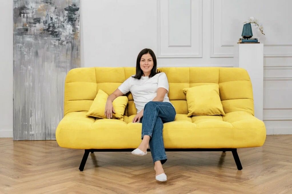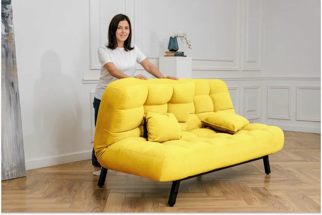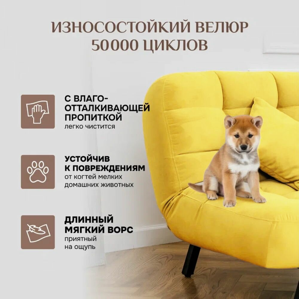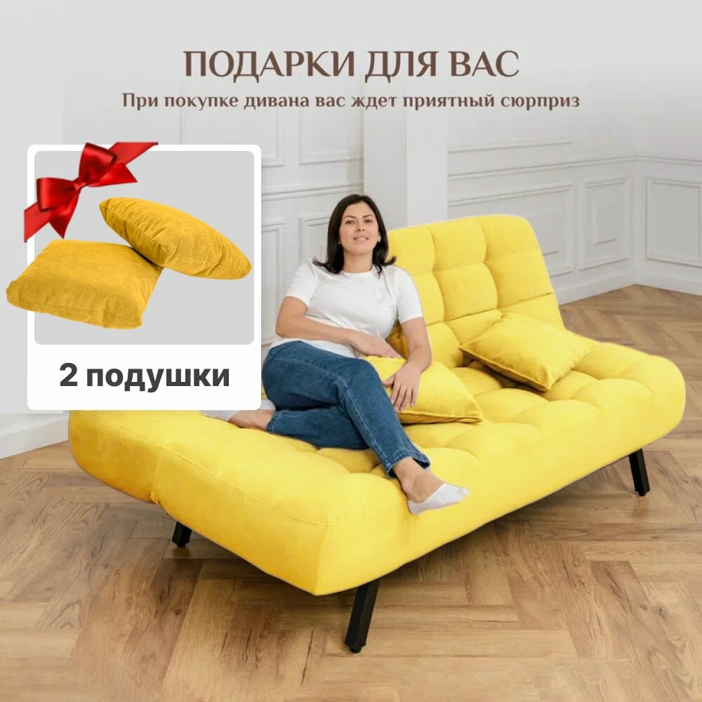 СохранитьДиван-кровать Brendoss 304, прямой диван раскладной с двойной спинкой, клик-кляк, антивандальный велюр, цвет желтый интересное: