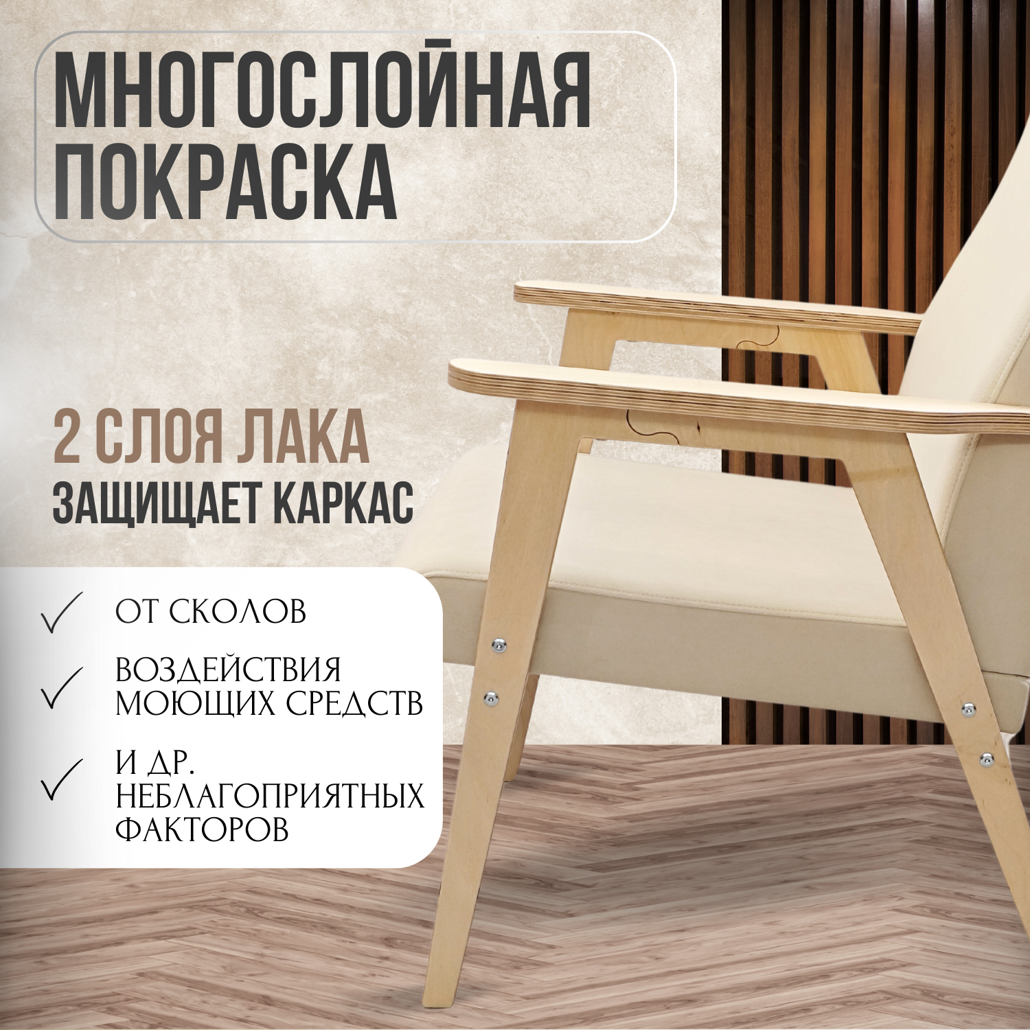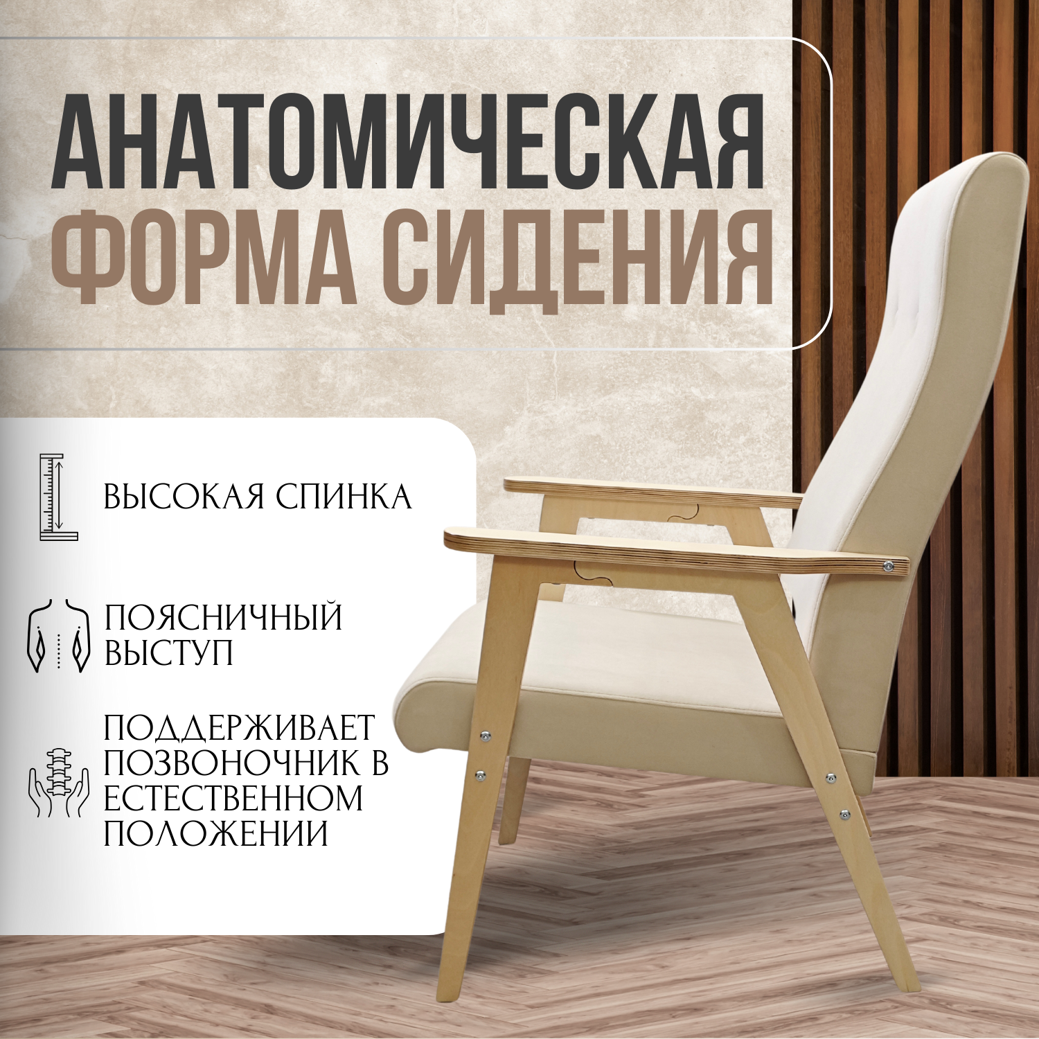 Кресло мягкое с подлокотниками "Ретро" для дома, дачи, офиса, светло-бежевый Ваниль