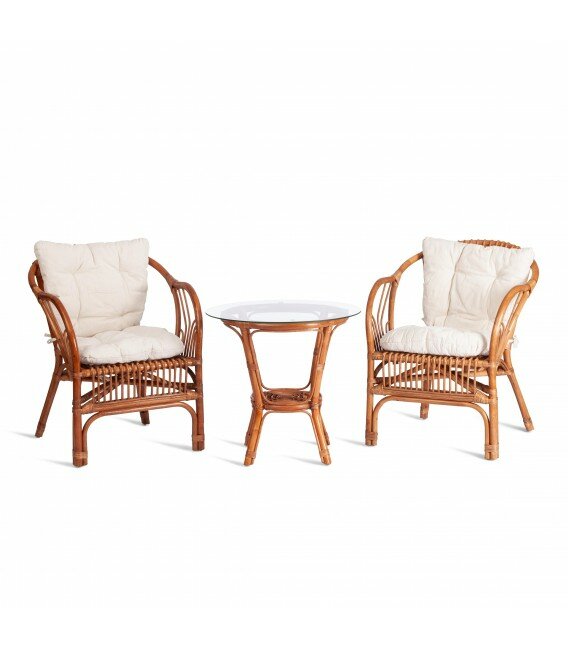 Комплект TetChair" NEW BOGOTA " ( диван + 2 кресла + стол со стеклом ) /с подушками/ ротанг, кр:61х67х78,5см, дв:108х66х78,5см, ст:D60х56,5см, walnut (грецкий орех)