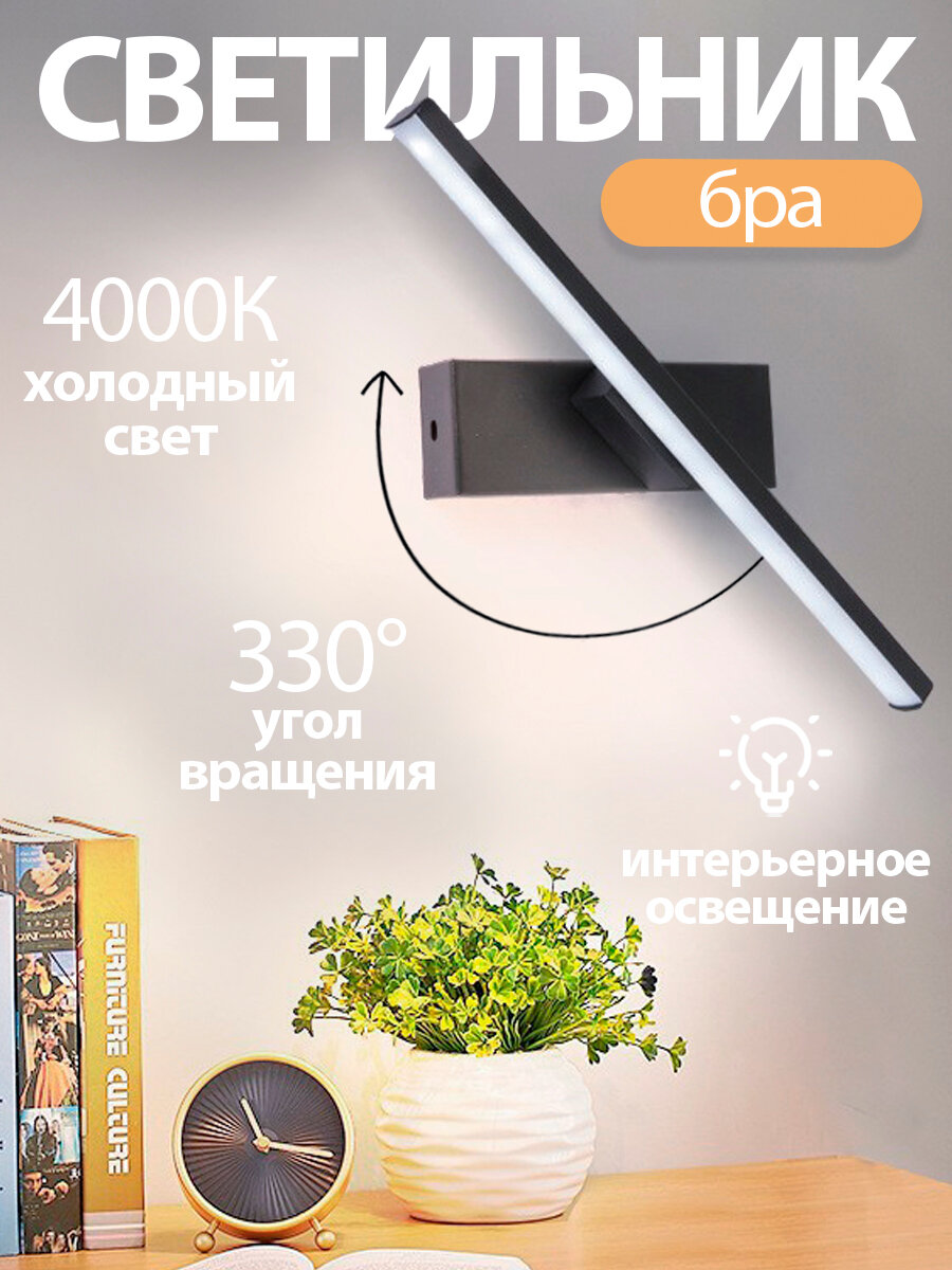 Светильник бра настенный поворотный Modern 305х50 мм Black 7W матовый черный (нейтральный белый 4000K)