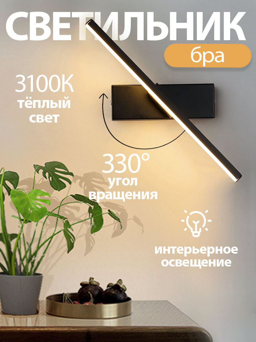 Светильник бра настенный поворотный Modern 305х50 мм 7W Black матовый черный (теплый свет 3100K)
